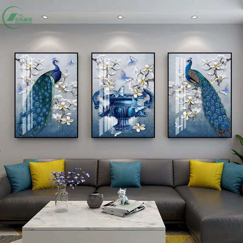 餐厅装饰画简欧欧式沙发背景墙壁画客厅墙面三联画挂画大气孔定做