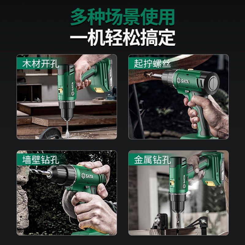 世达电钻充电式锂电钻电动螺丝刀多功能家用电钻冲击钻手枪钻电转