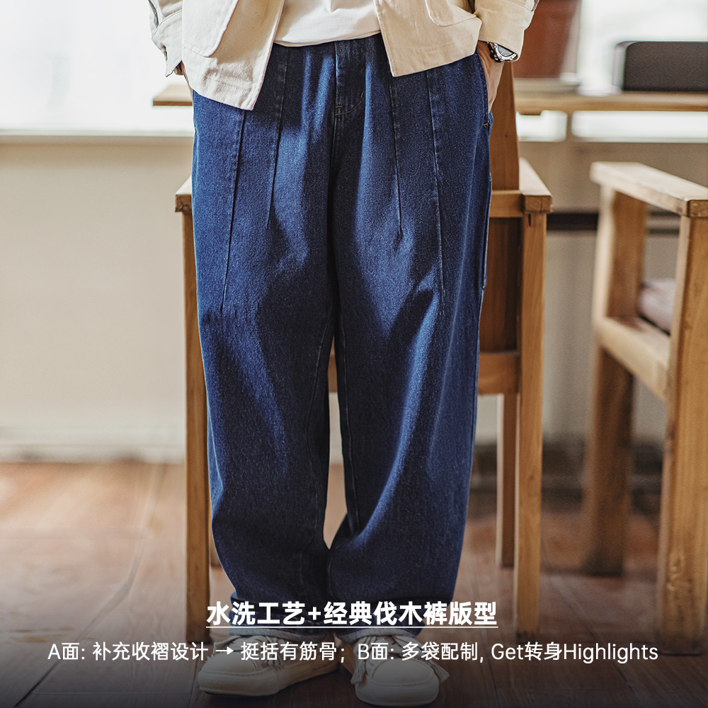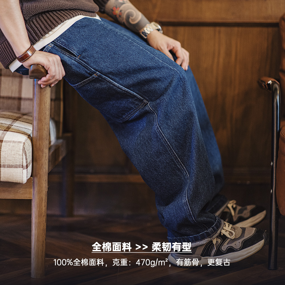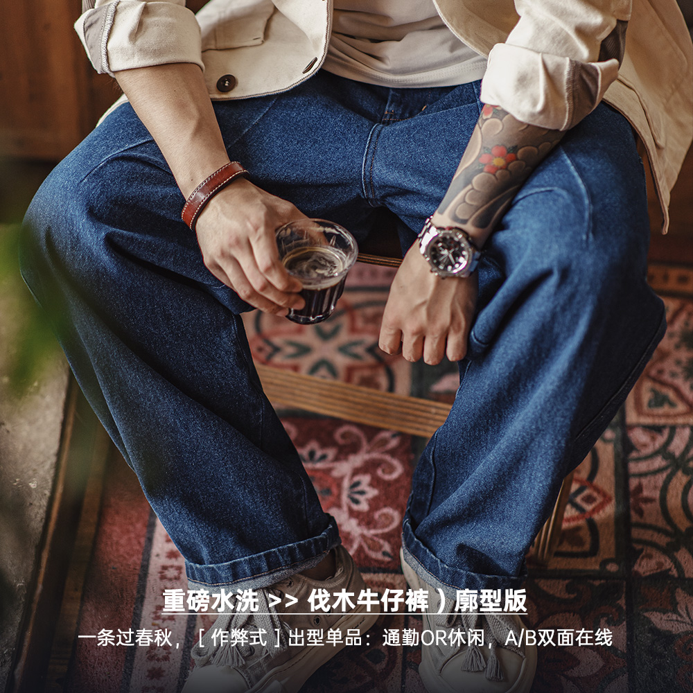 马登工装美式复古重磅水洗伐木牛仔裤廓形宽松阔腿休闲直筒裤男秋