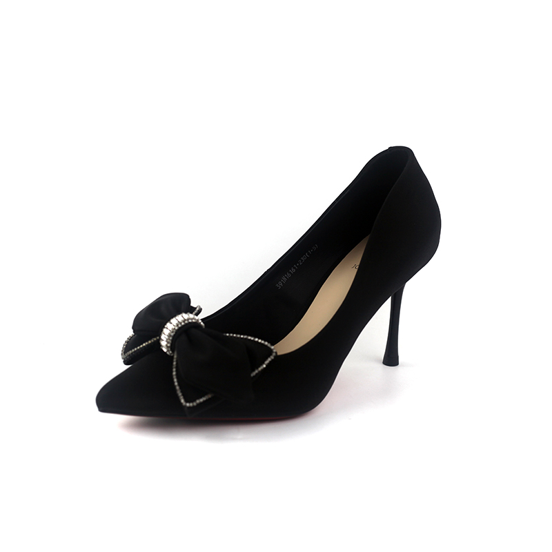 卓诗尼女鞋春秋季新款浅口单鞋气质尖头优雅细高跟蝴蝶结时装通勤
