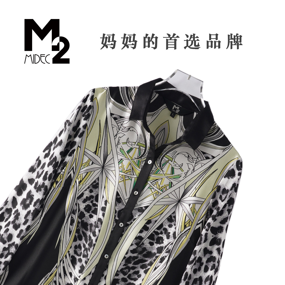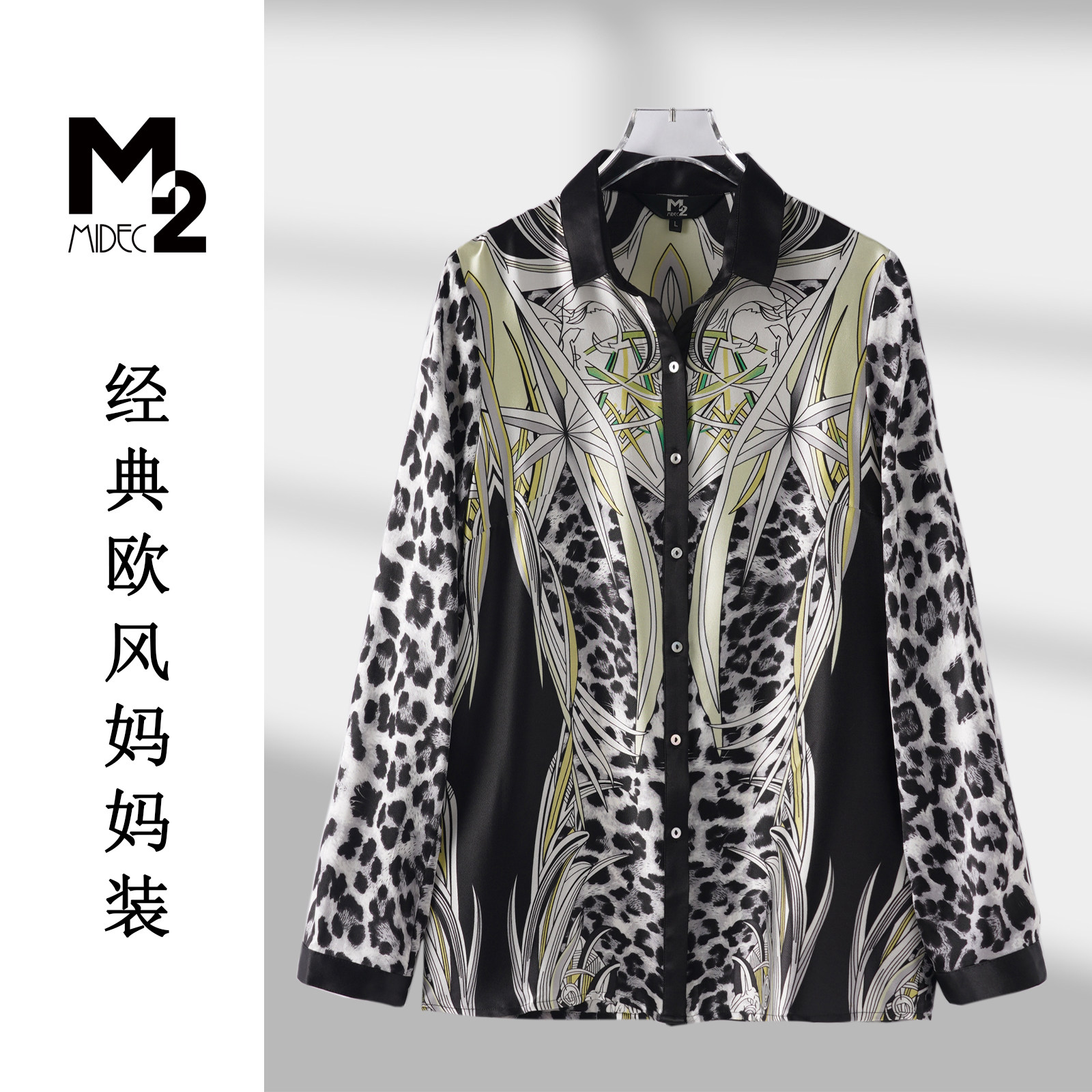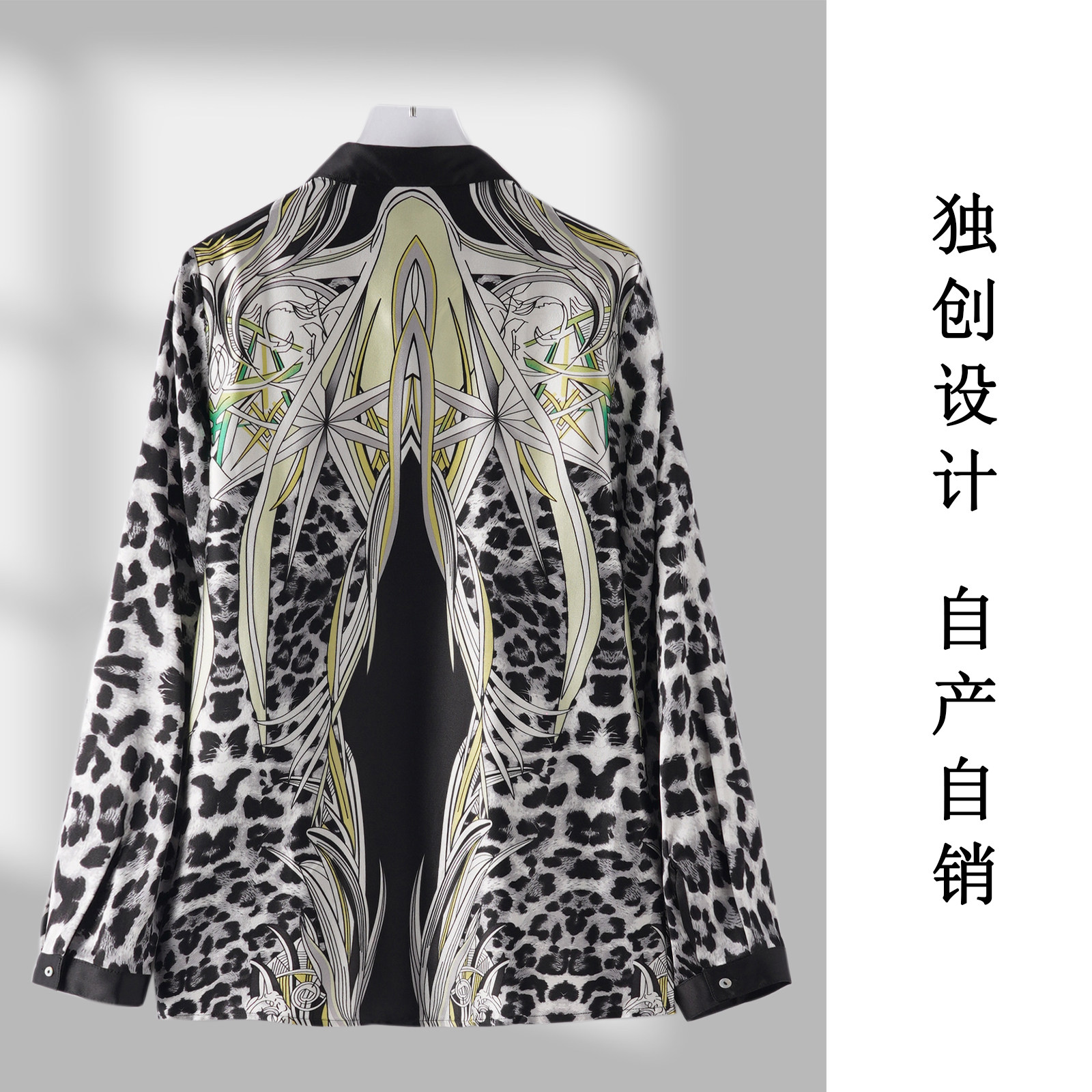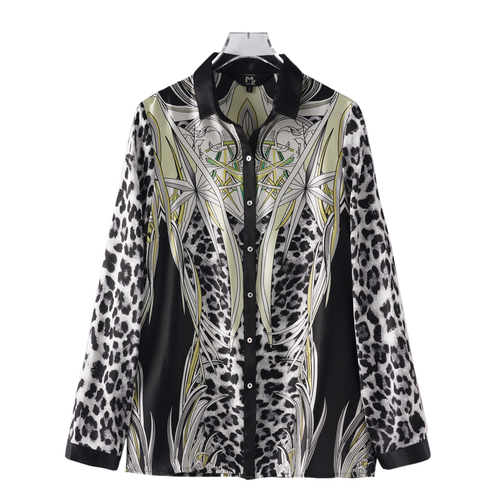 M2折扣店夏季新款宽松休闲百搭衬衣上衣豹纹印花桑蚕丝长袖衬衫女
