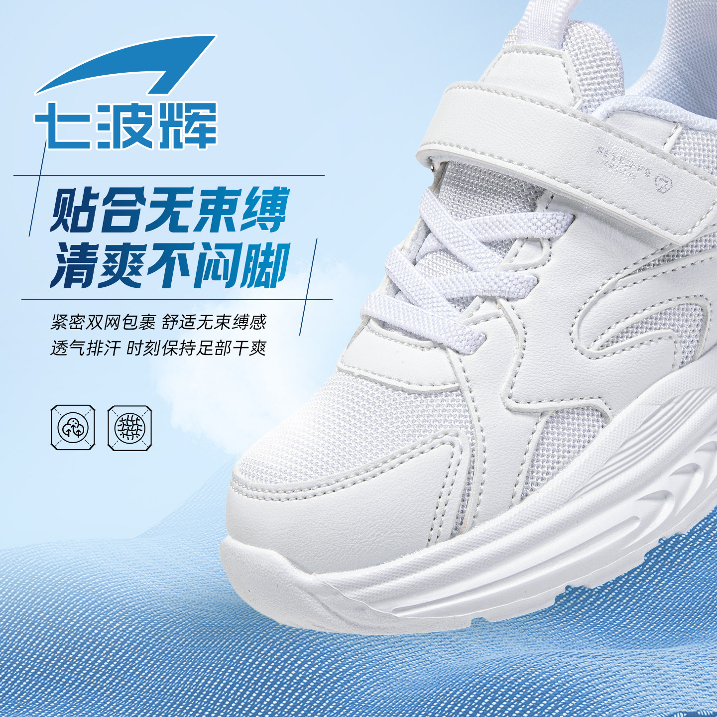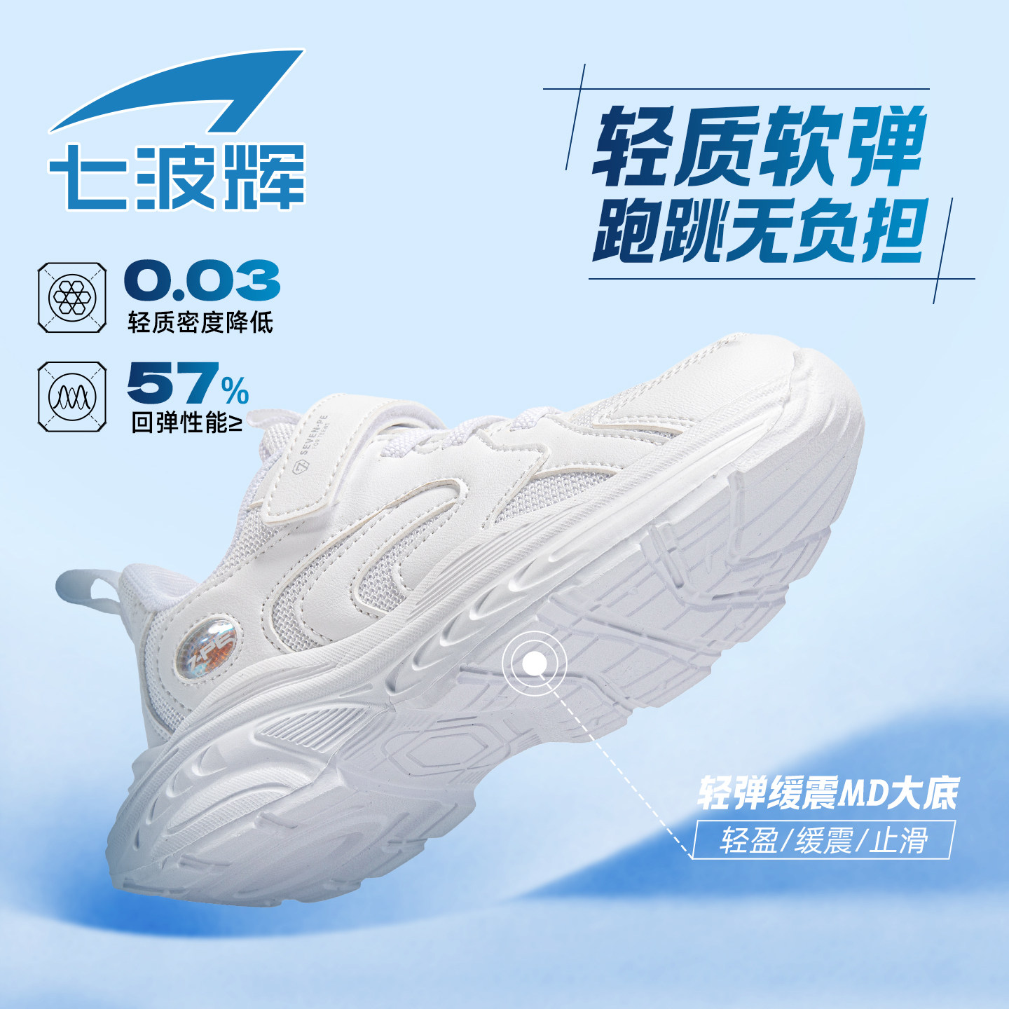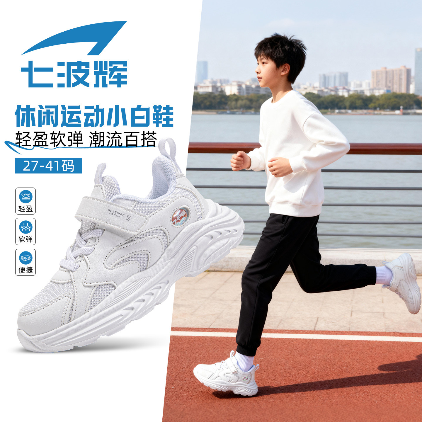 七波辉男童白色运动鞋女童小白鞋儿童鞋子春秋款小学生大童跑步鞋