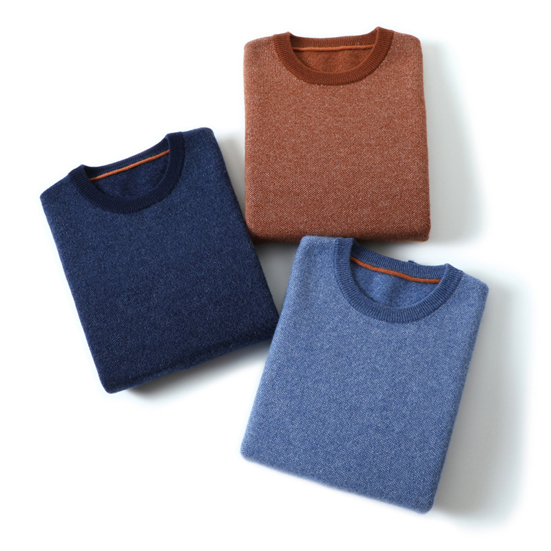 魅力男人~气质男士圆领羊绒衫加厚套头纯羊绒毛衣针织衫提花宽松