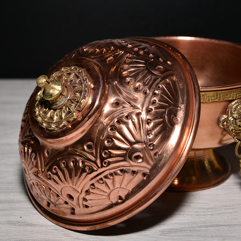 尼泊尔纯铜吊香炉挂式八吉祥盘香炉香藏式家用室内供奉镂空香薰炉