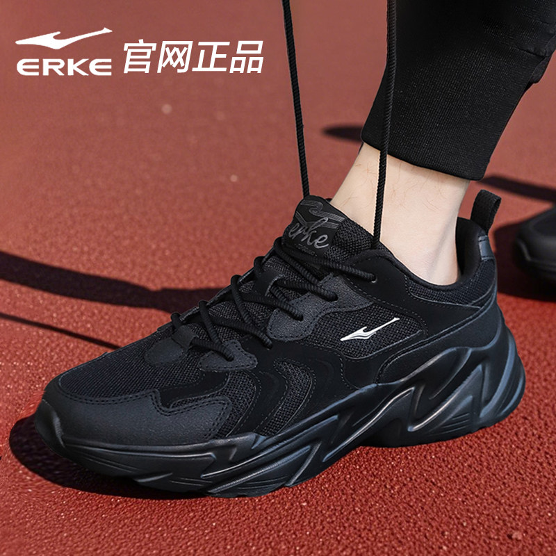鸿星尔克男鞋冬季2026新款透气休闲跑步鞋黑色网面透气运动鞋男款