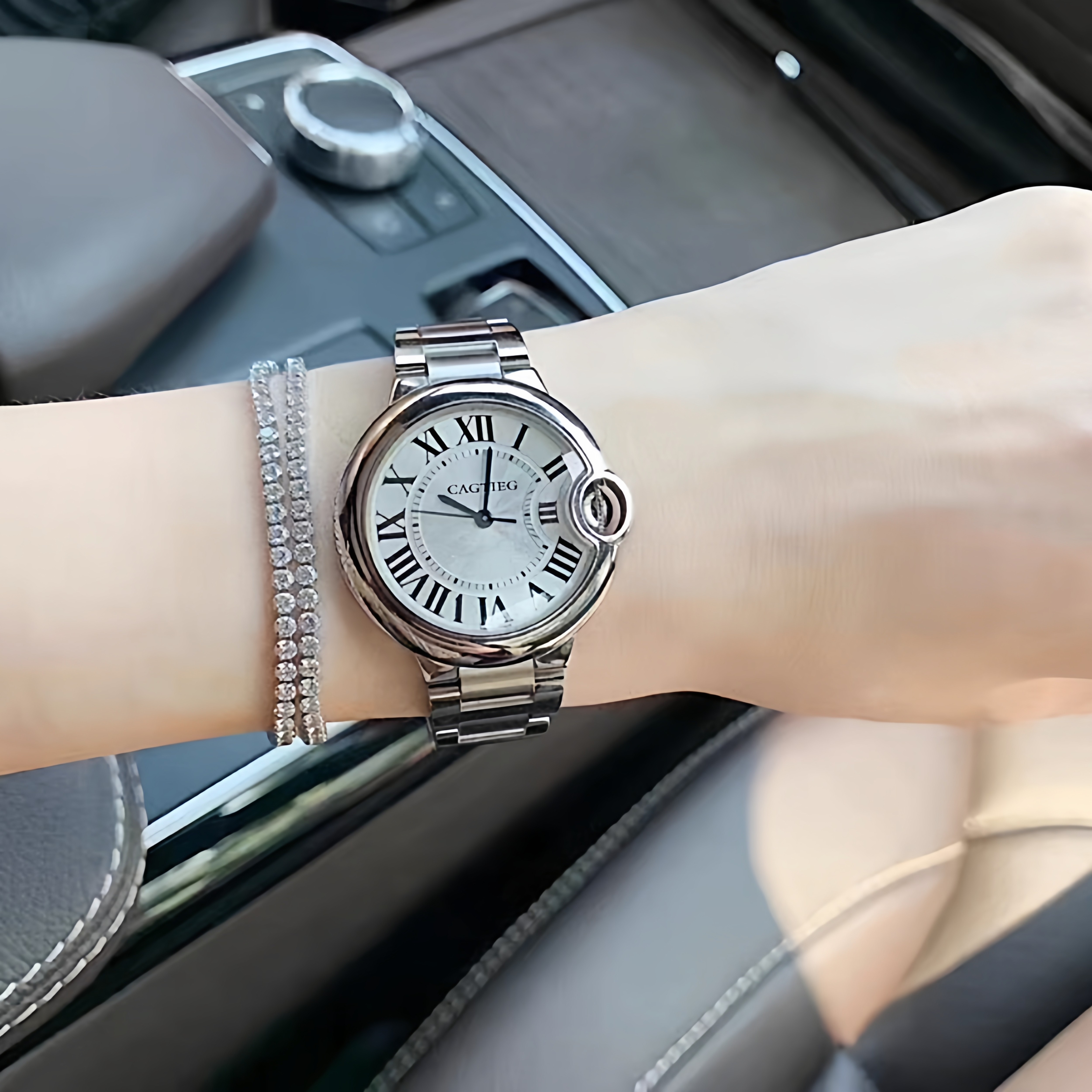 瑞士手表女士蓝针气球石英机芯时尚精钢腕表女士防水鱼泡眼女表