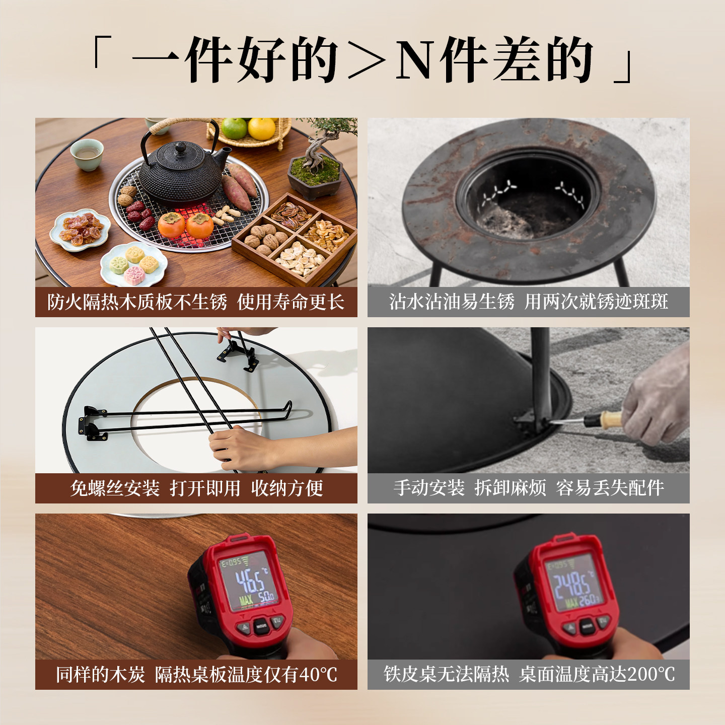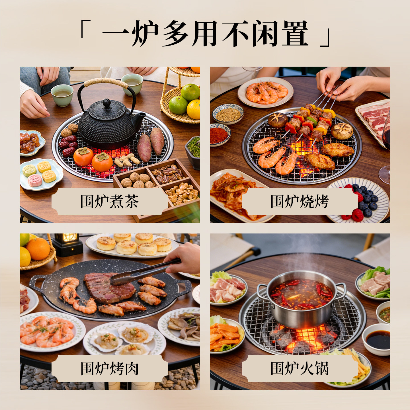 围炉煮茶桌子烤火炉套装器具全套冬日家用室内烤奶茶罐烧烤一体桌