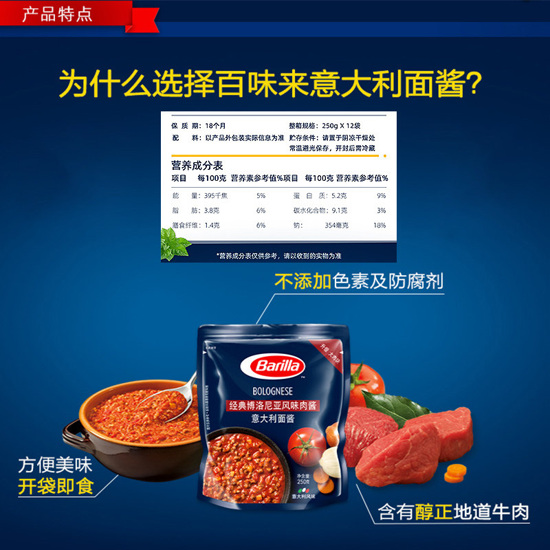 百味来意大利面酱250g小包装barilla拌面肉酱儿童番茄罗勒意面酱