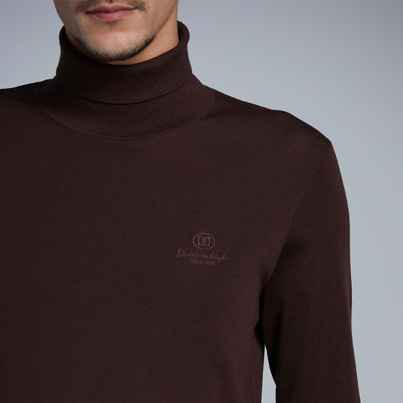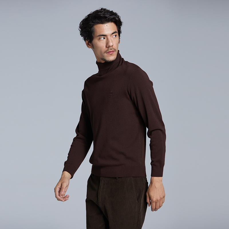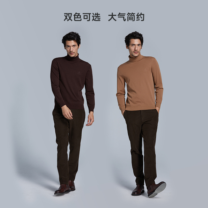 DIDIBOY迪迪博迩冬季款高领保暖纯色羊毛衫内搭咖啡色针织毛衣男