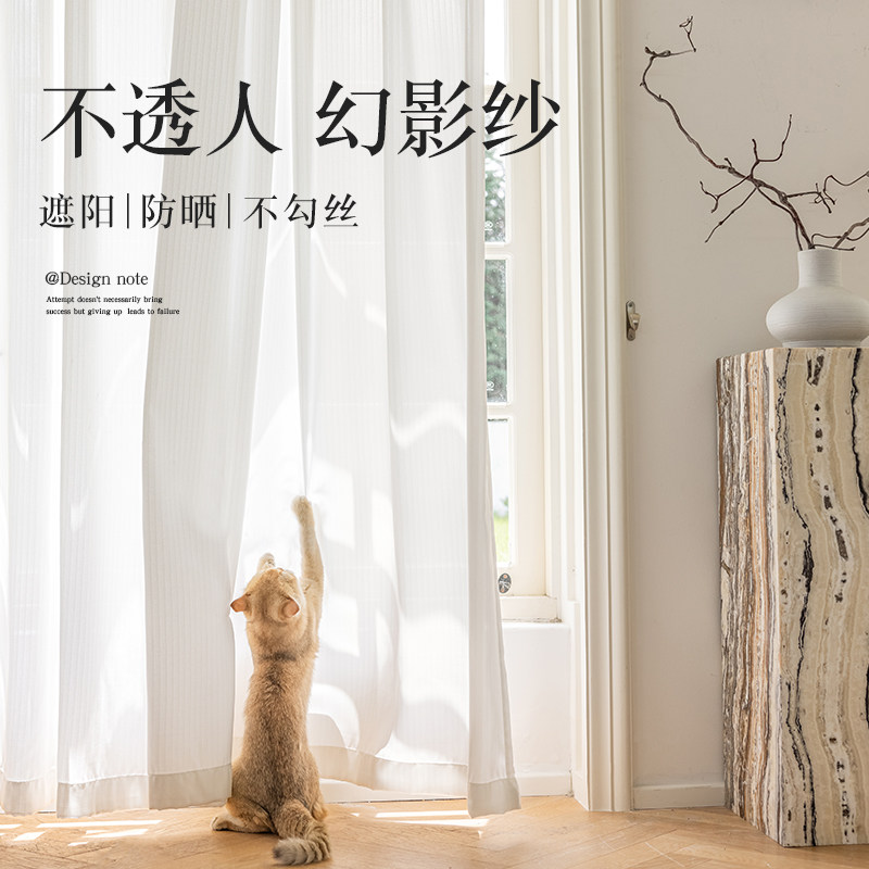 2025新款幻影纱窗帘纱帘透光不透人卧室客厅阳台遮阳飘窗隔热简约