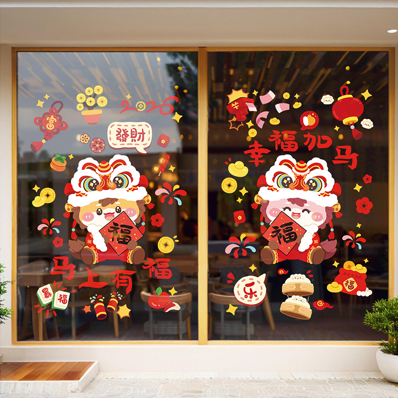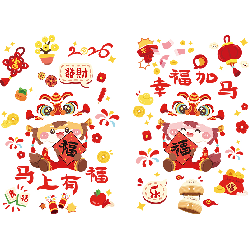 春节装饰品2026马年新年玻璃贴纸门贴窗贴过年氛围布置静电贴年画