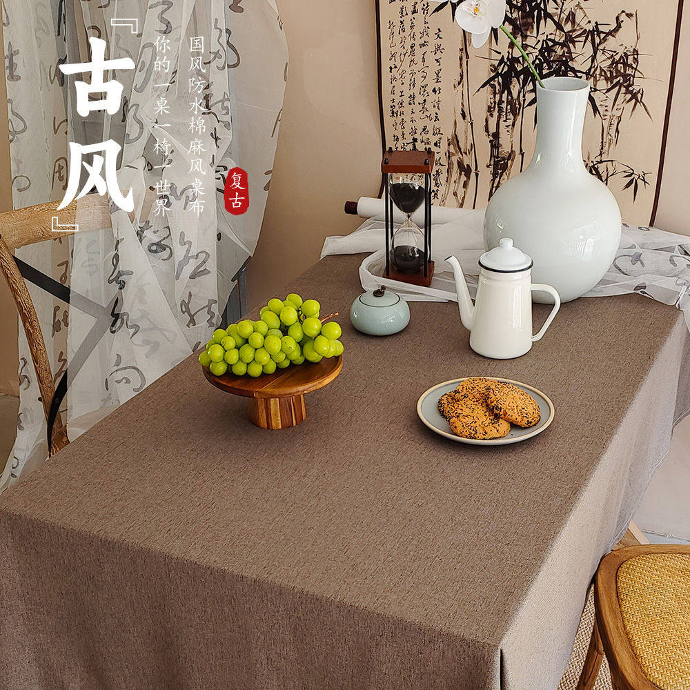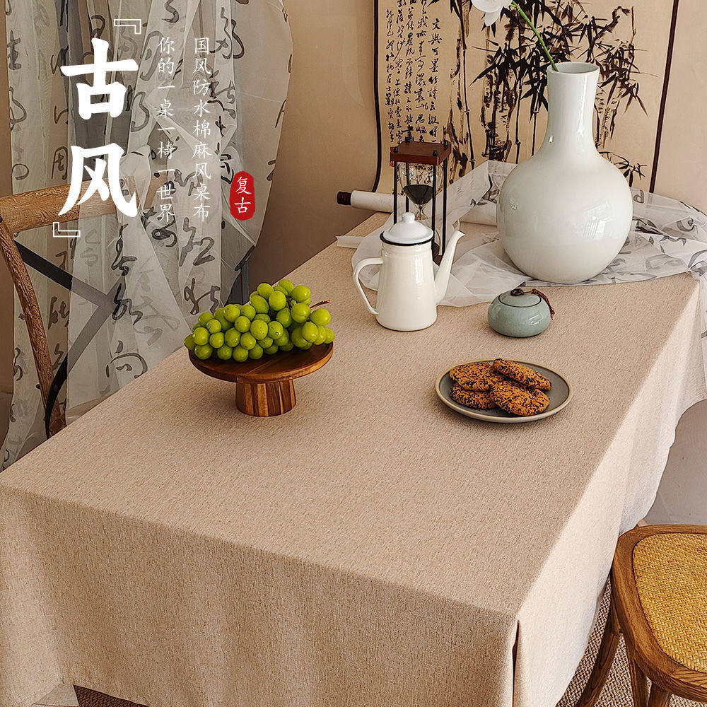 新中式棉麻桌布复古茶几餐桌布高级感防水防油免洗台布茶桌布