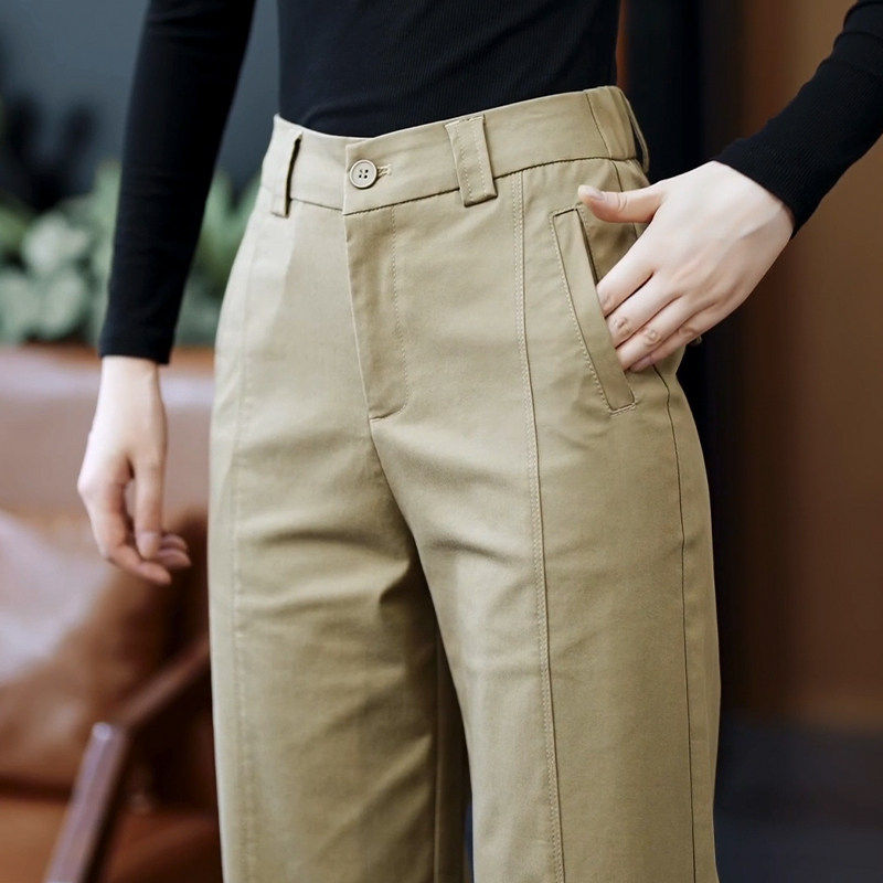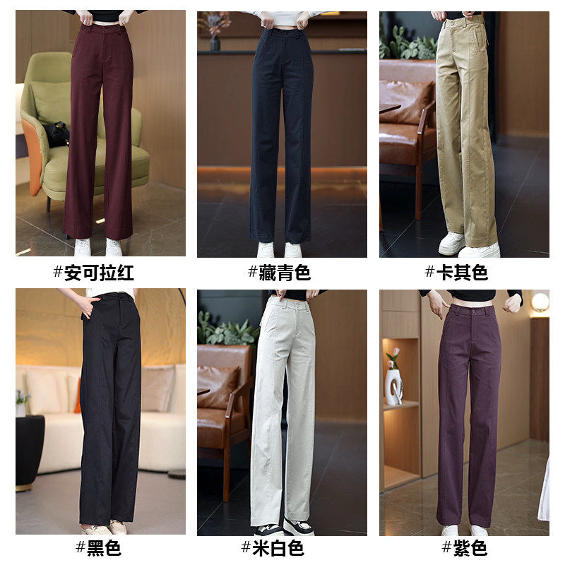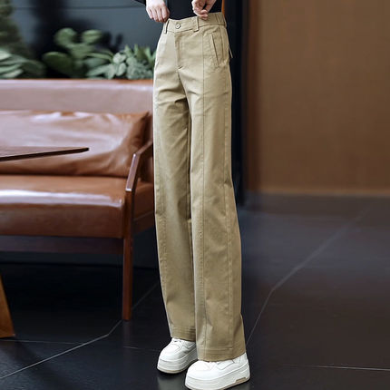 天丝棉休闲直筒裤女春秋新款宽松显瘦西装裤时尚高腰窄版阔腿裤子