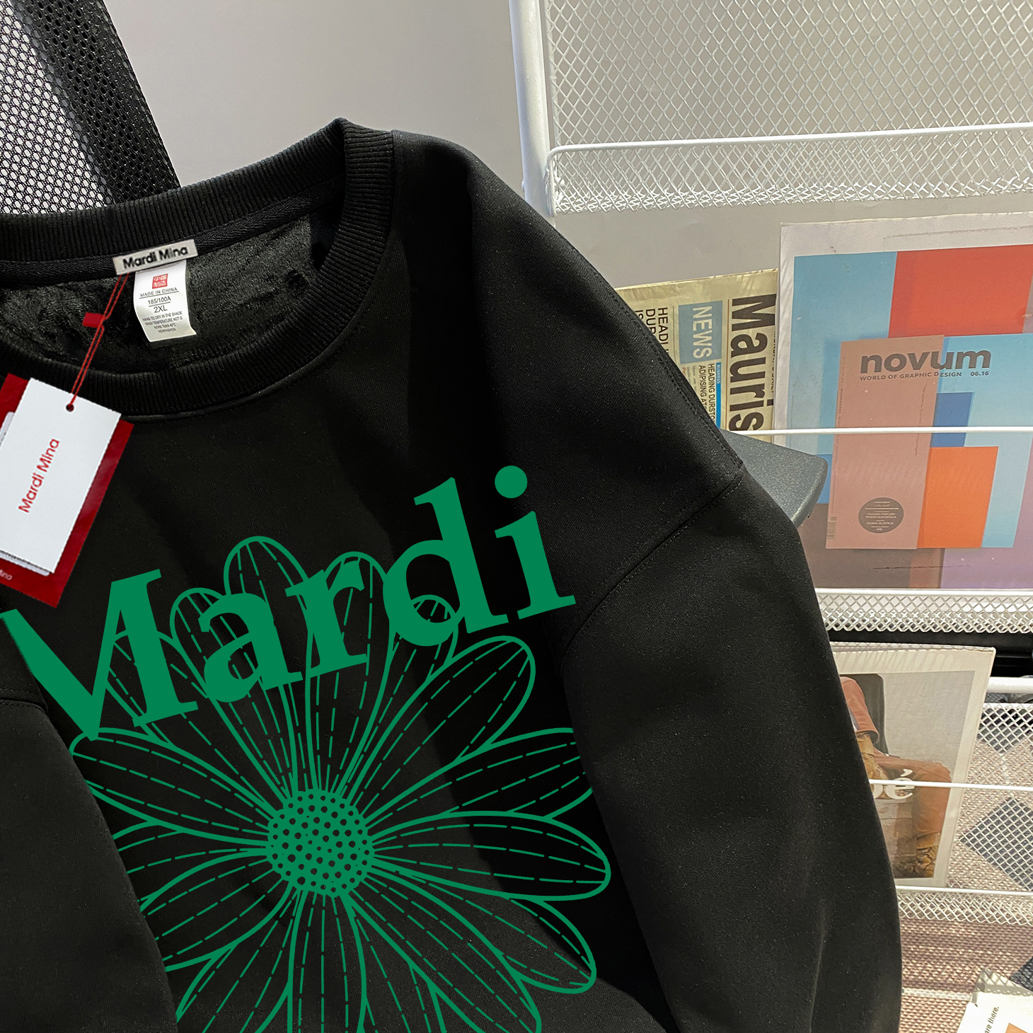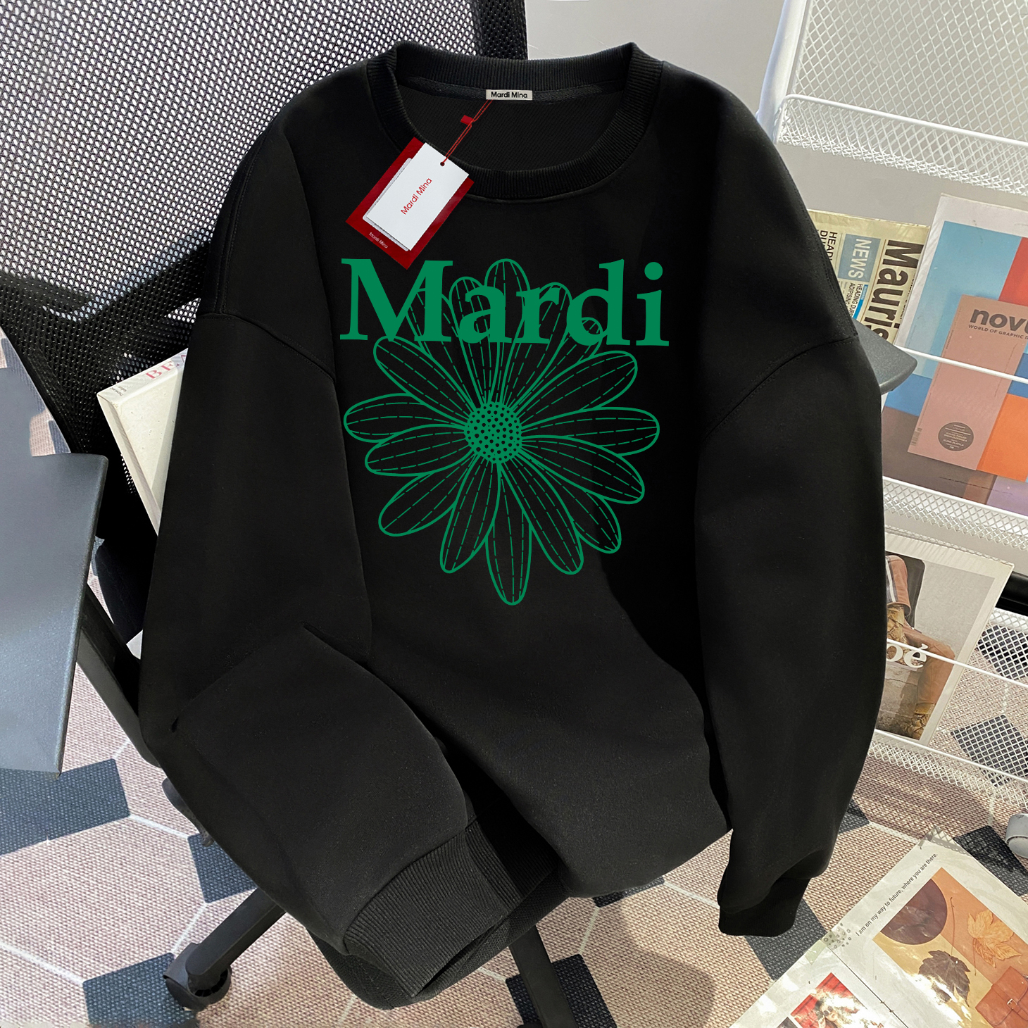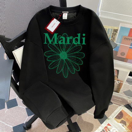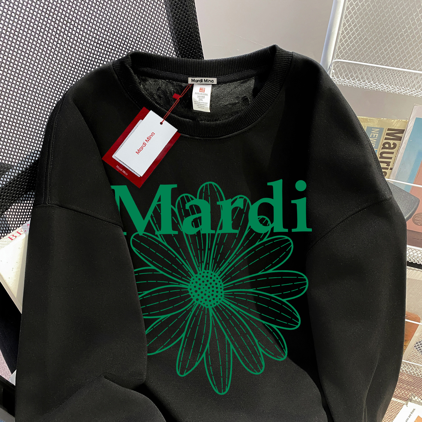 mardi小雏菊灰色圆领卫衣男女款秋季宽松纯棉重磅中大童长袖上衣