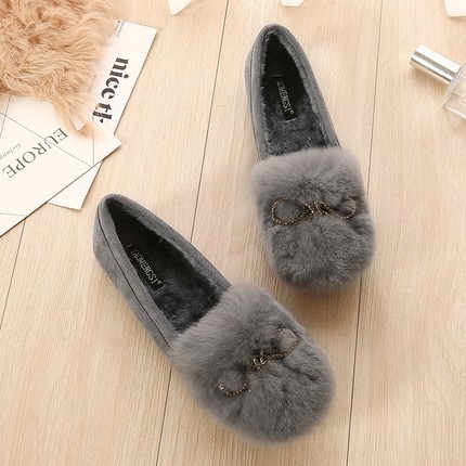 棉瓢鞋毛毛鞋女浅口大码水钻外穿豆豆鞋厚底加绒加厚单鞋43码平底