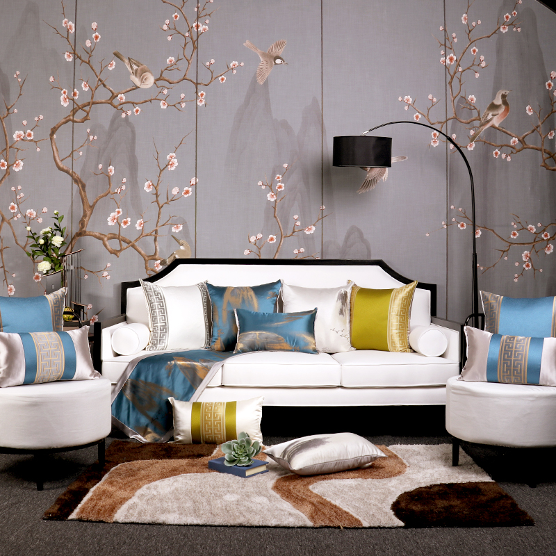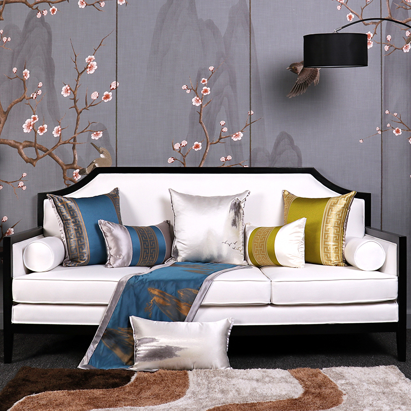 现代中式风格样板房抱枕客厅沙发古典蓝色回纹靠枕中国风禅意靠垫