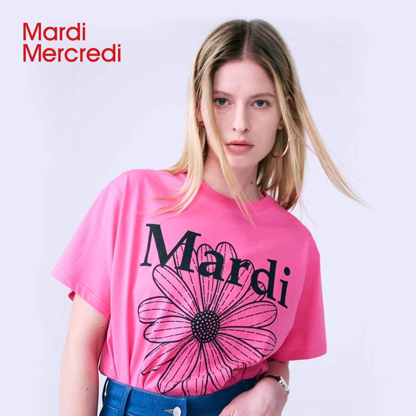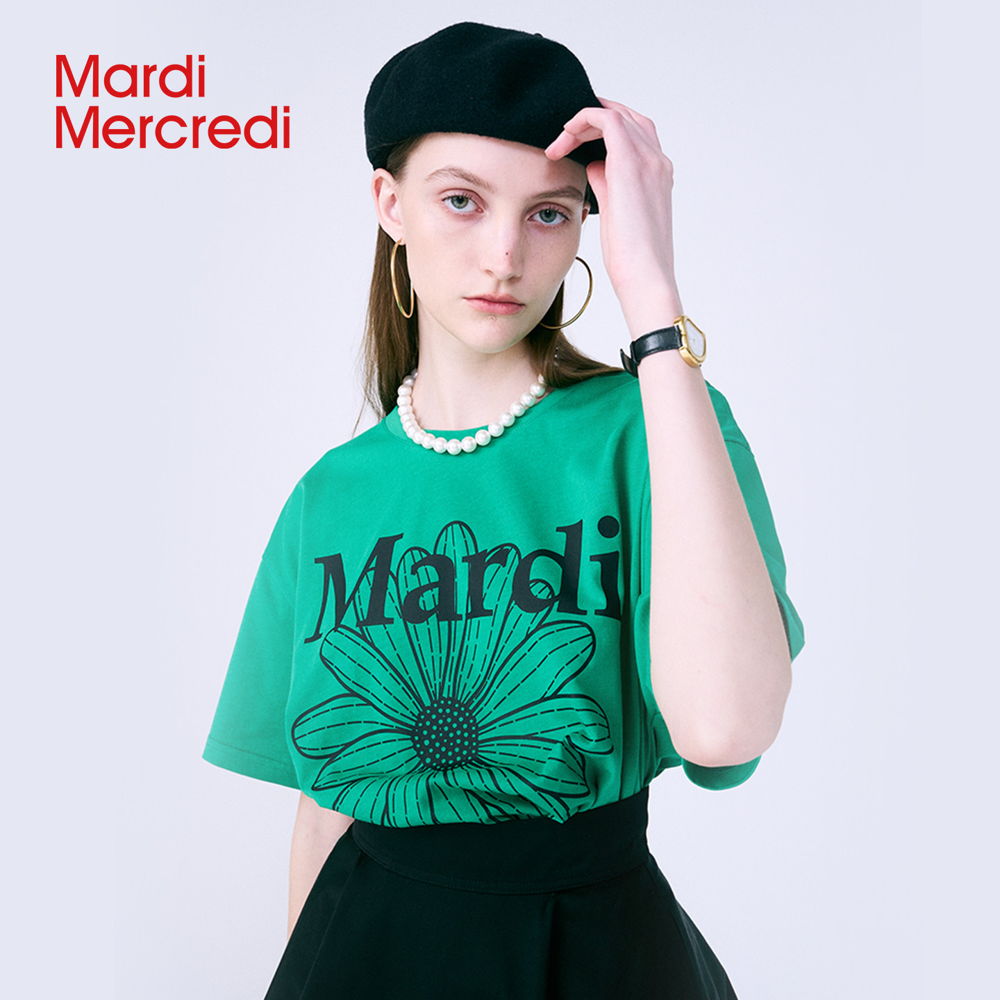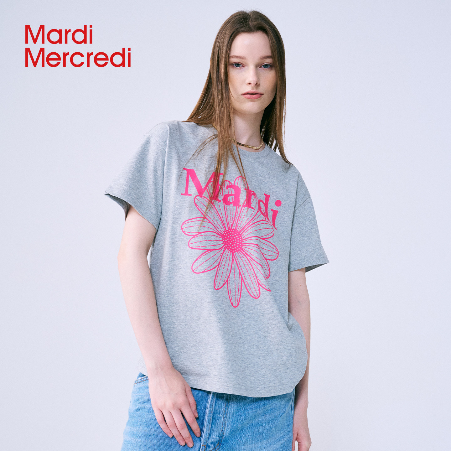 MardiMercredi经典小雏菊字母印花短袖t恤宽松纯棉上衣男女多巴胺