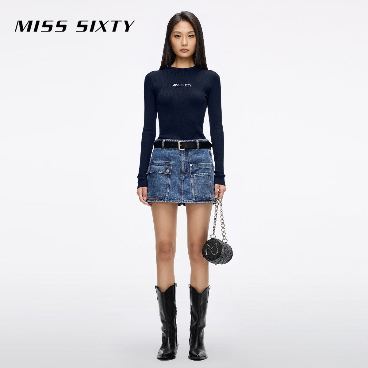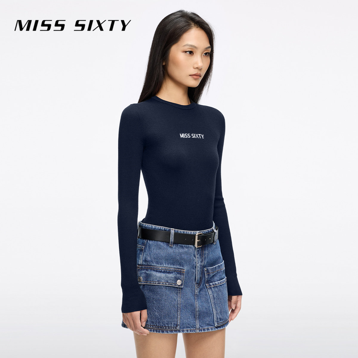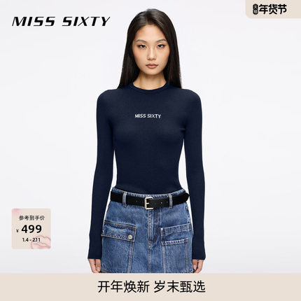 Miss Sixty25秋新款针织衫女圆领修身羊毛桑蚕丝混纺提花毛衣