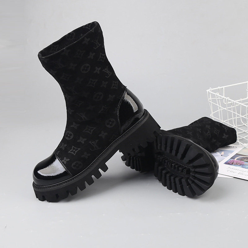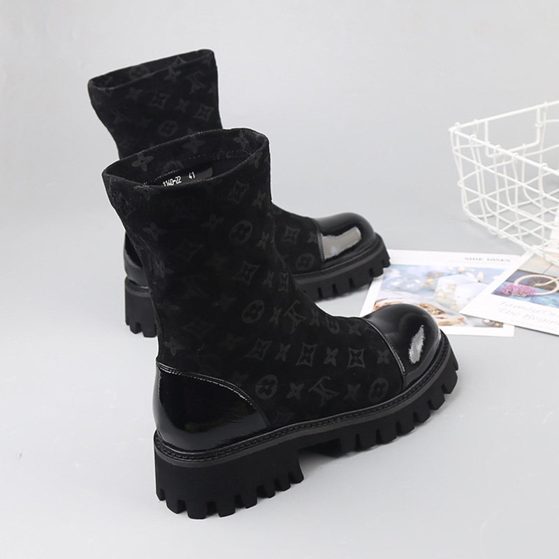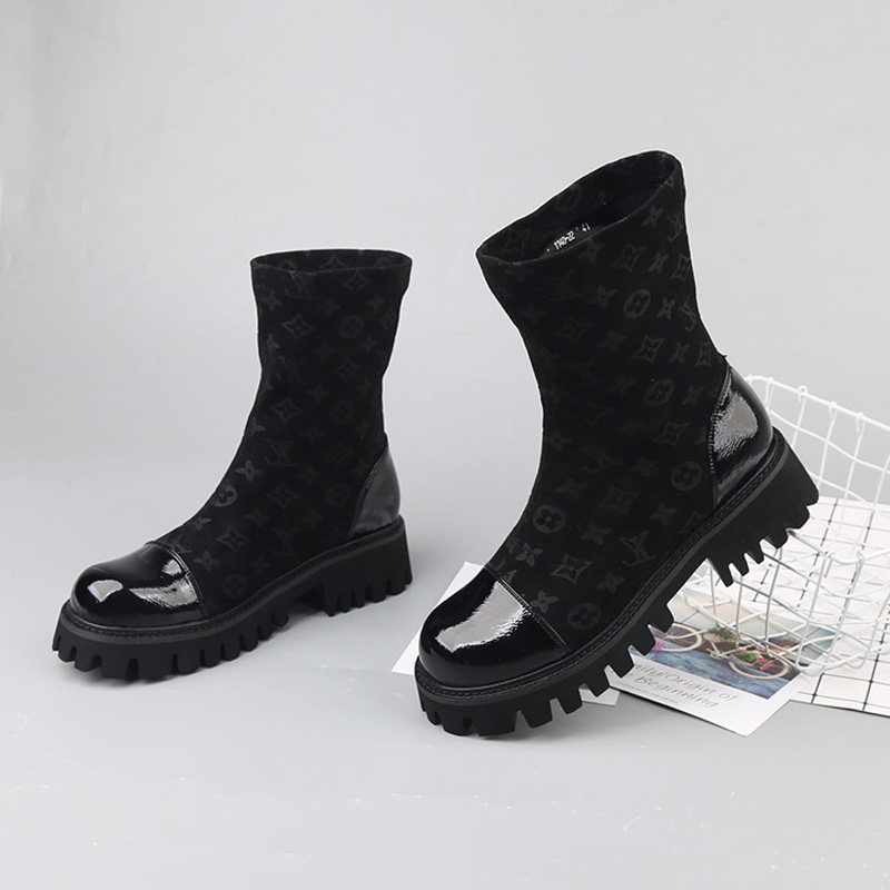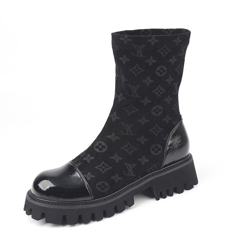 新款大码女靴41一43单鞋春秋弹力靴时尚百搭中跟粗跟中筒短靴女鞋
