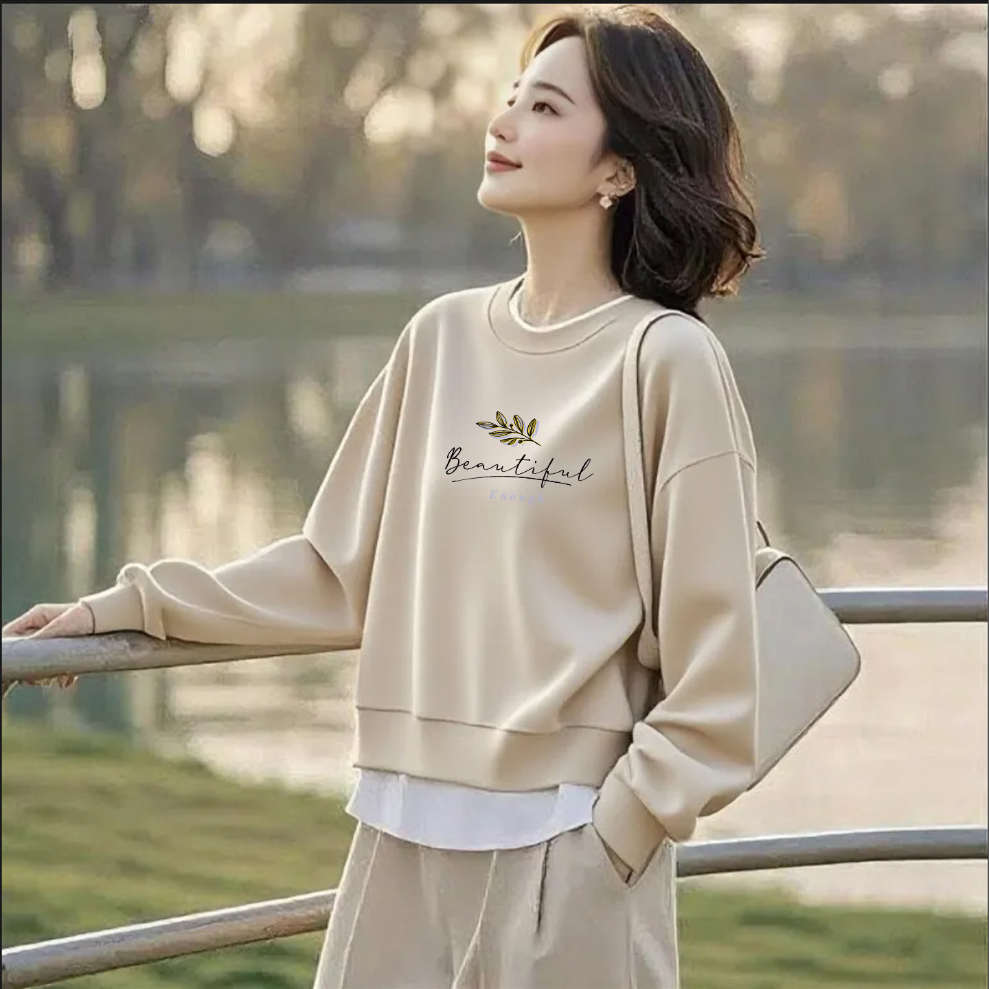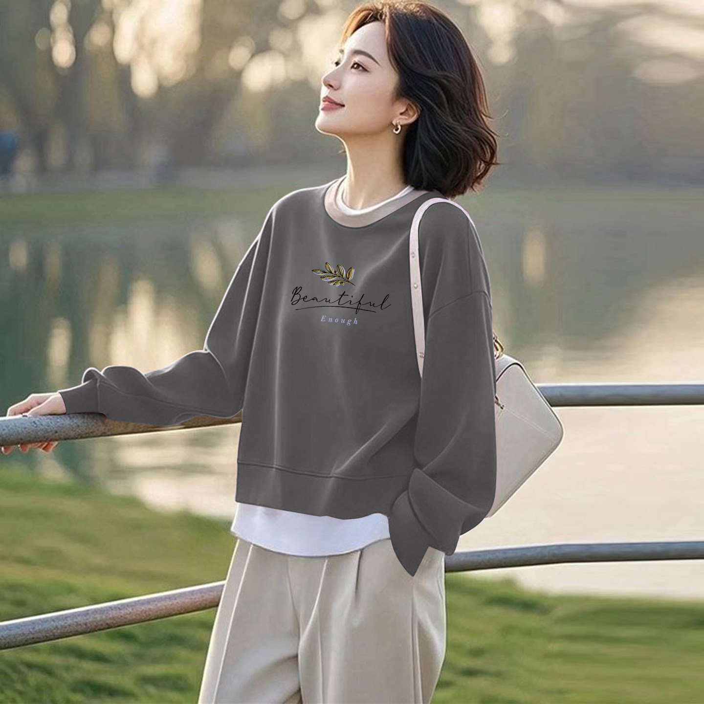 外贸出口品牌清仓纯棉时尚长袖卫衣女春秋款气质显瘦文艺休闲上衣