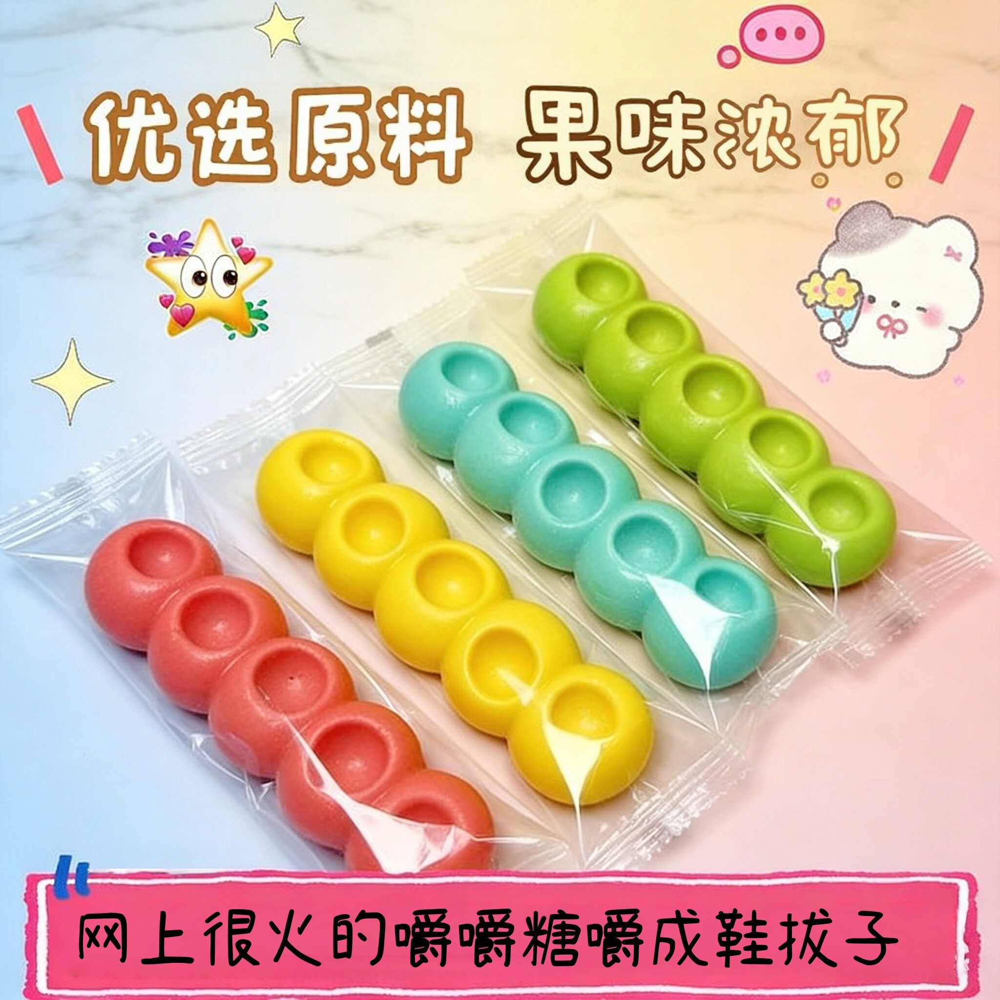嚼嚼乐糖果耐嚼多彩软糖网红糖葫芦水果玉米咬不动的糖拽拽糖零食