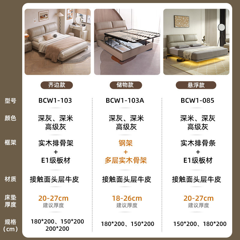慕思旗舰店真皮床主卧大床1米8双人床悬浮床卧室实木床储物床架