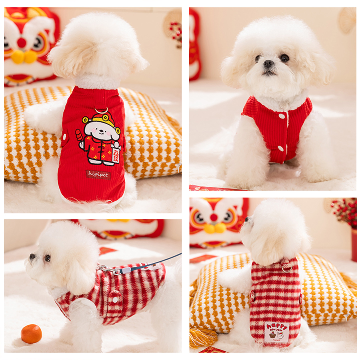 新年喜庆小狗狗衣服冬装泰迪比熊宠物小型犬西高地雪纳瑞冬天棉衣