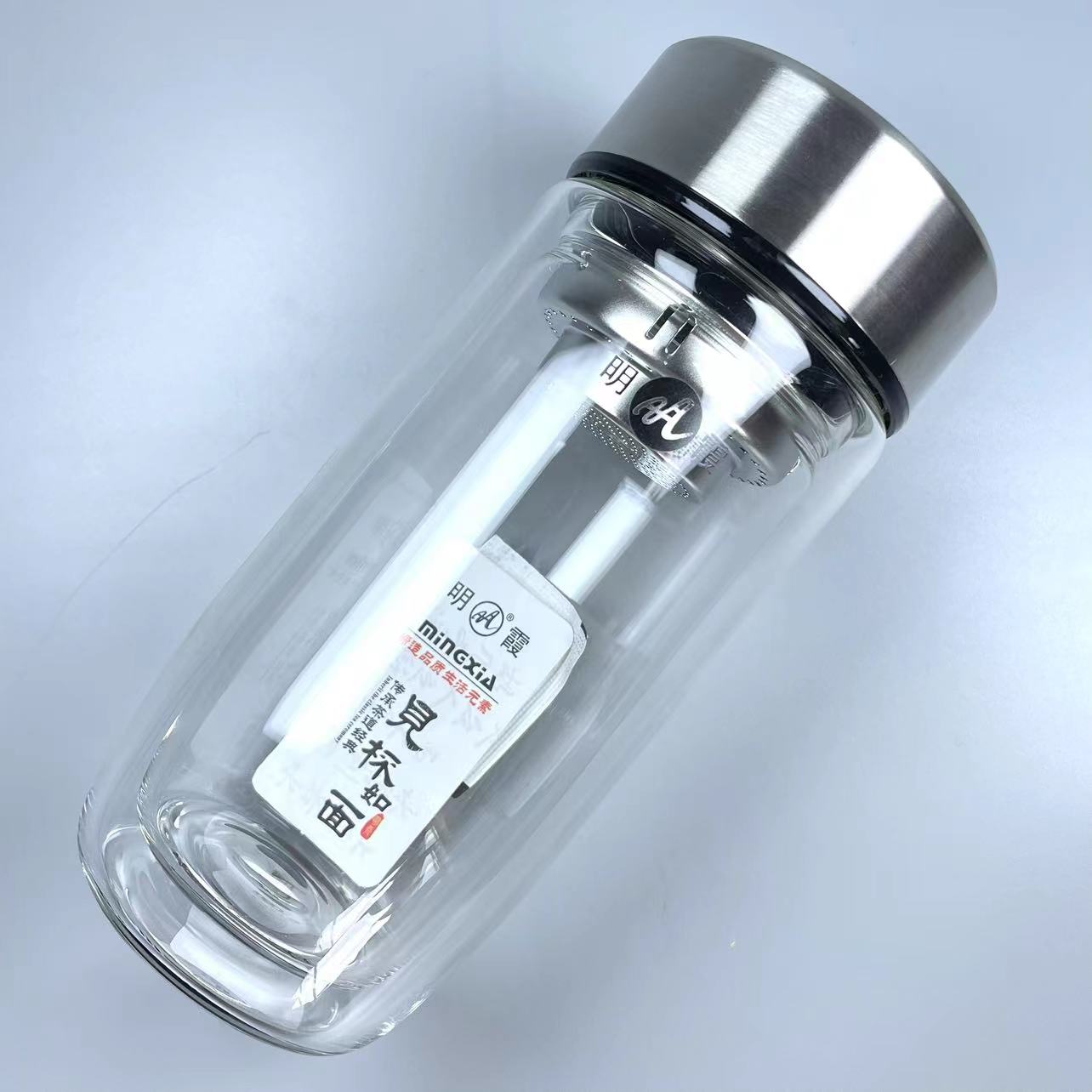 明霞双层鹅蛋杯茶杯印logo水杯大肚杯玻璃杯广告杯印字大容量定制