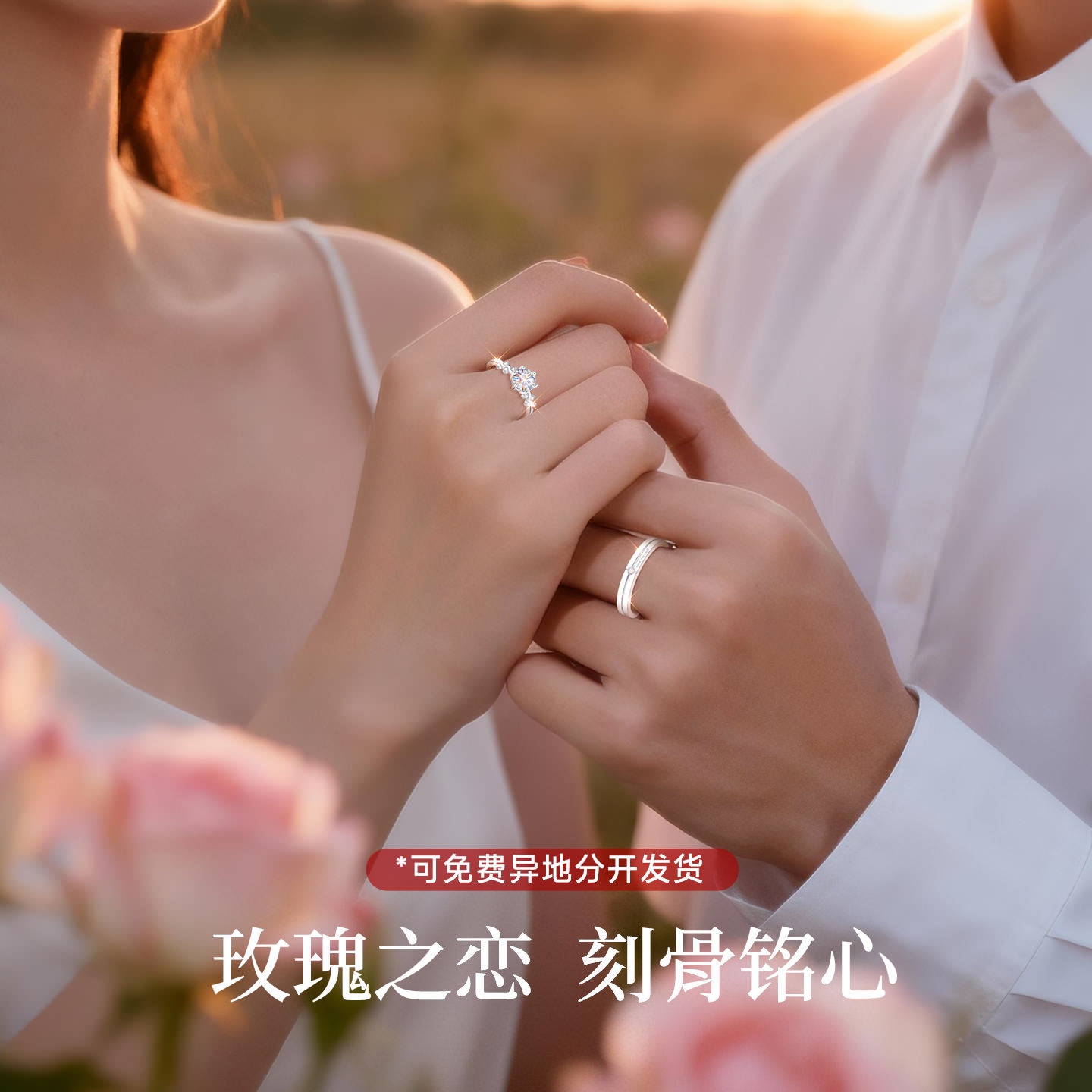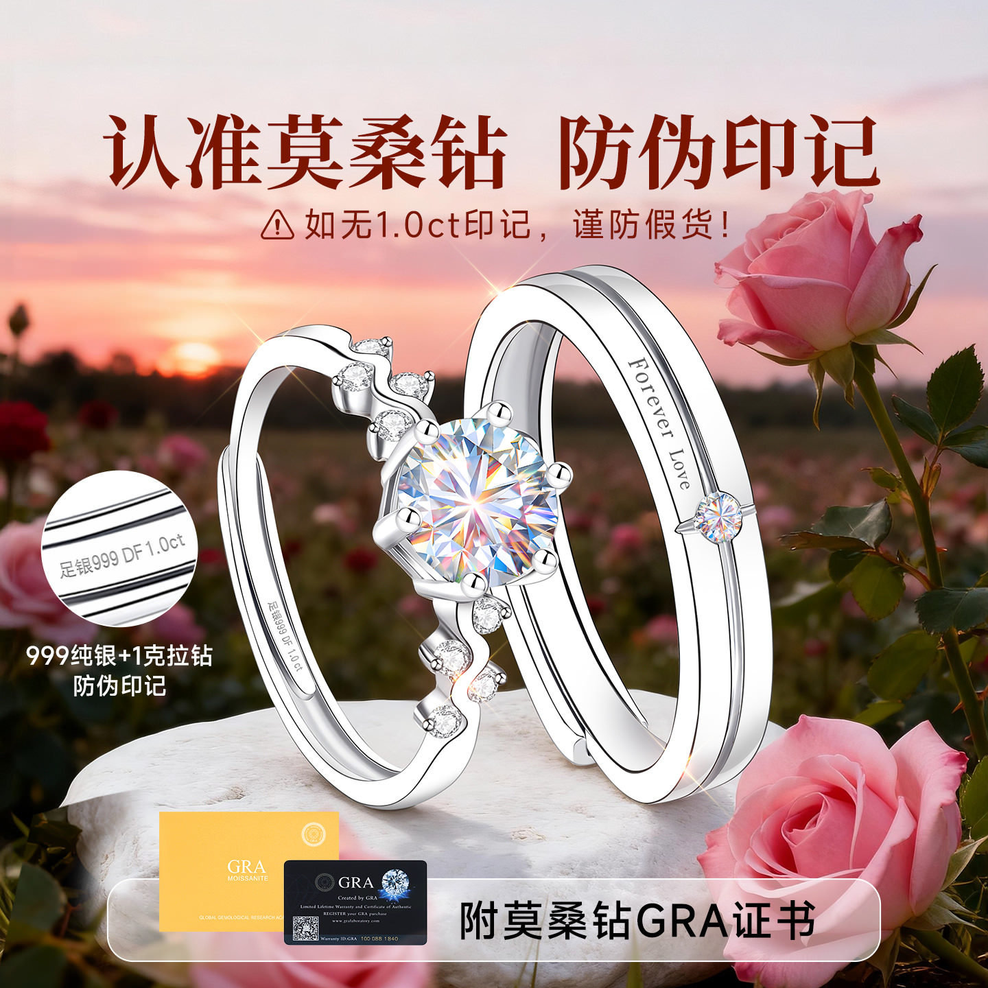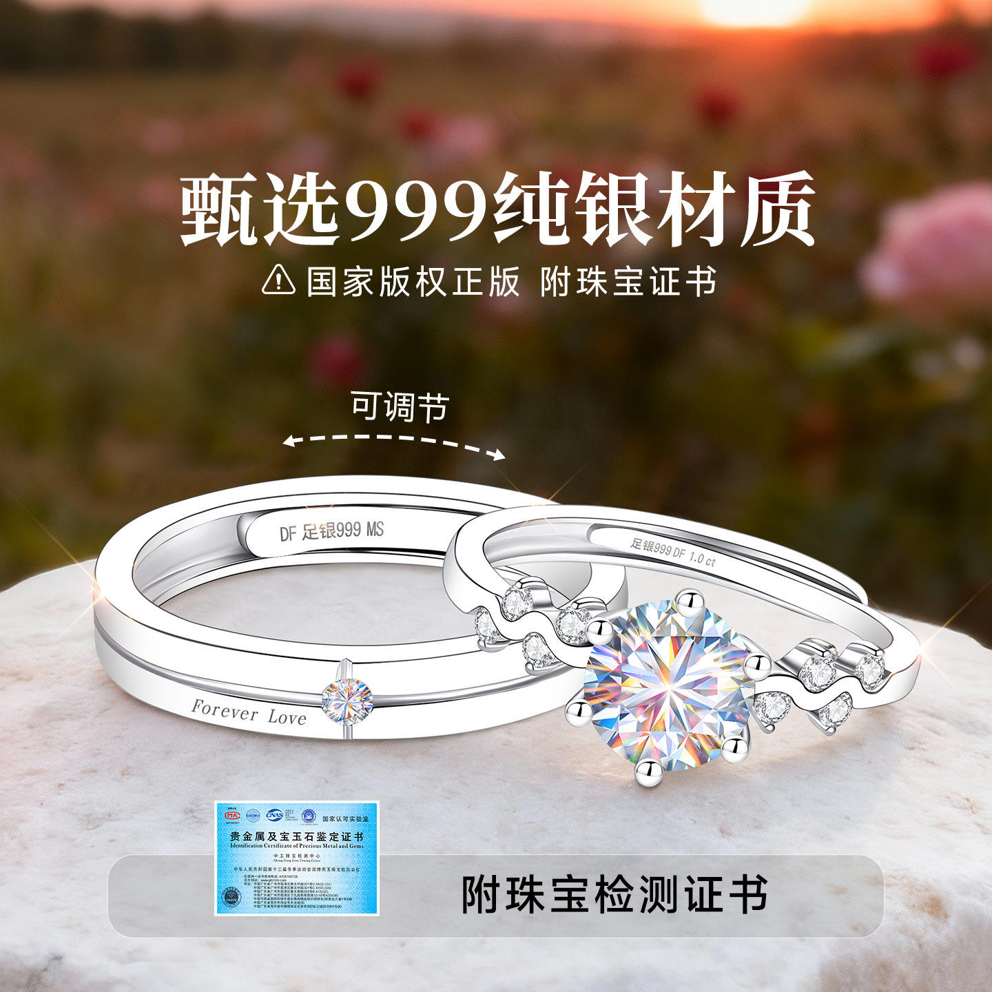 银戒指情侣对戒999纯银一对求婚结婚婚戒莫桑石莫桑钻钻戒高级感