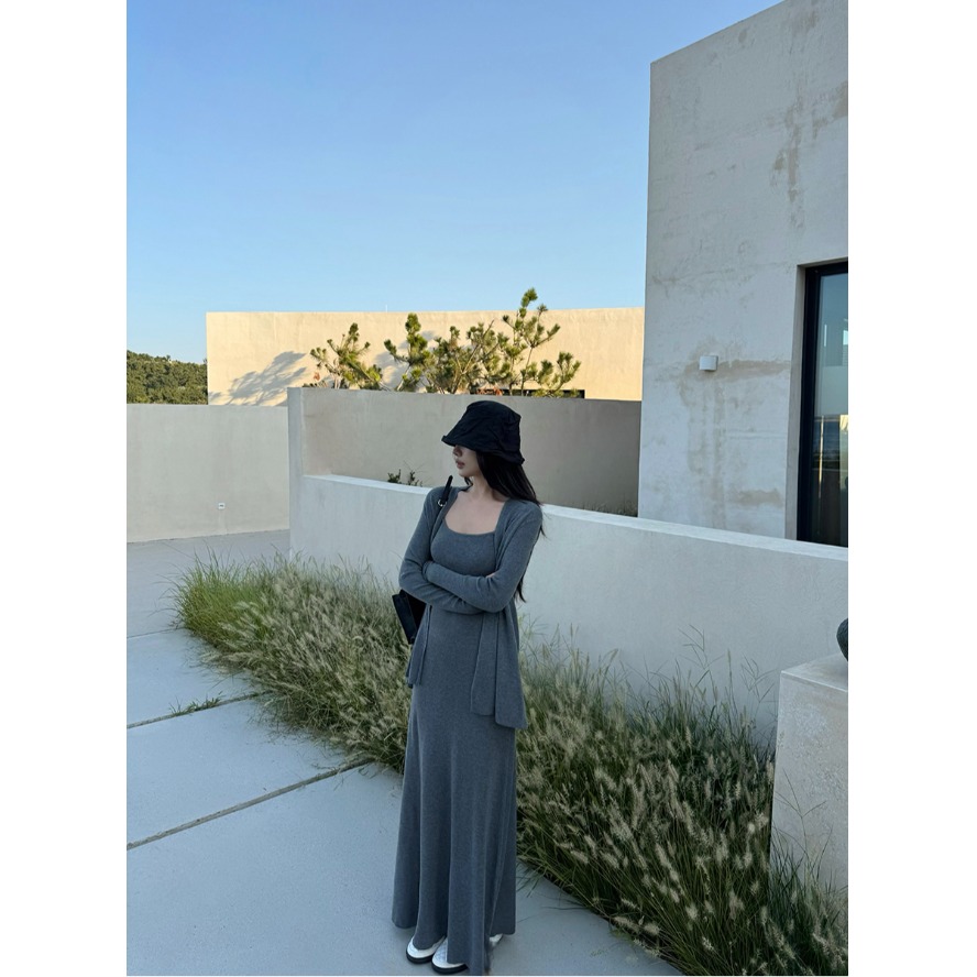 纯欲风时尚气质吊带连衣裙女秋季新款收腰显瘦开衫上衣两件套套装