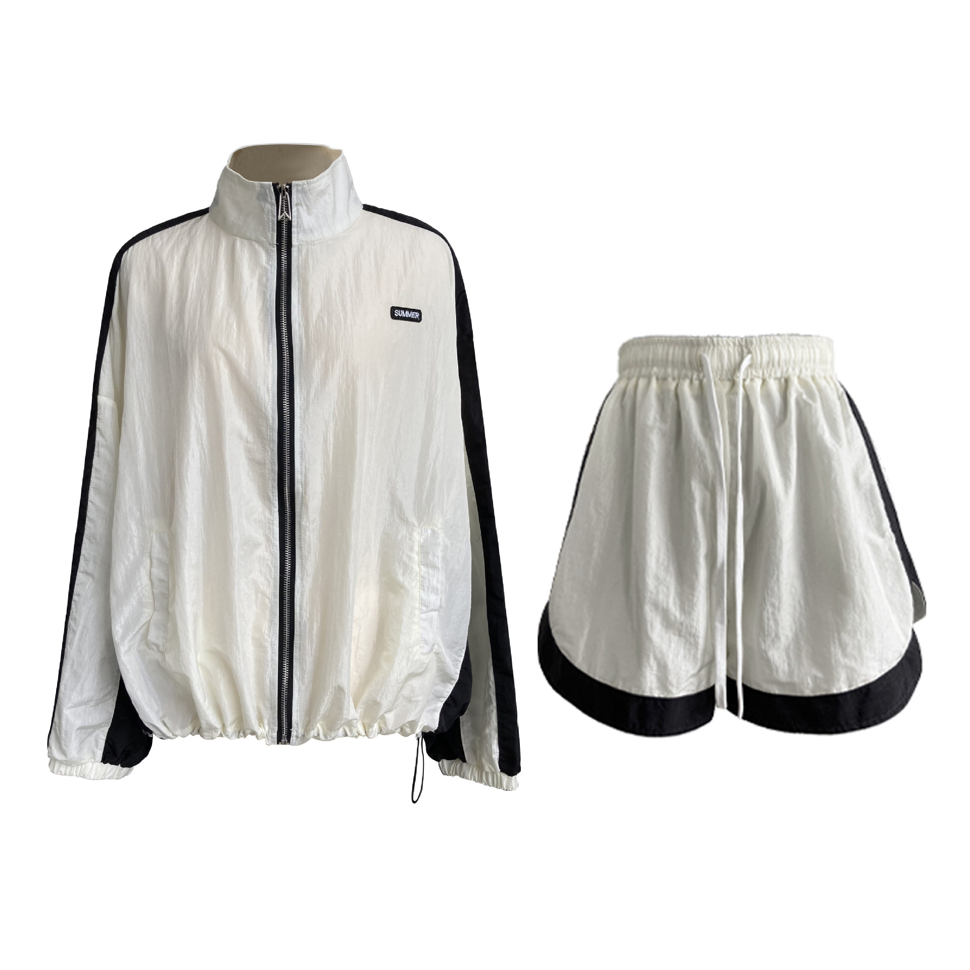 鹿西 拼色防晒外套+阔腿短裤套装女春夏时尚休闲防晒衣两件套