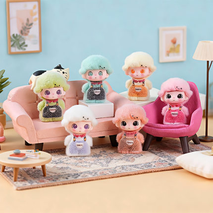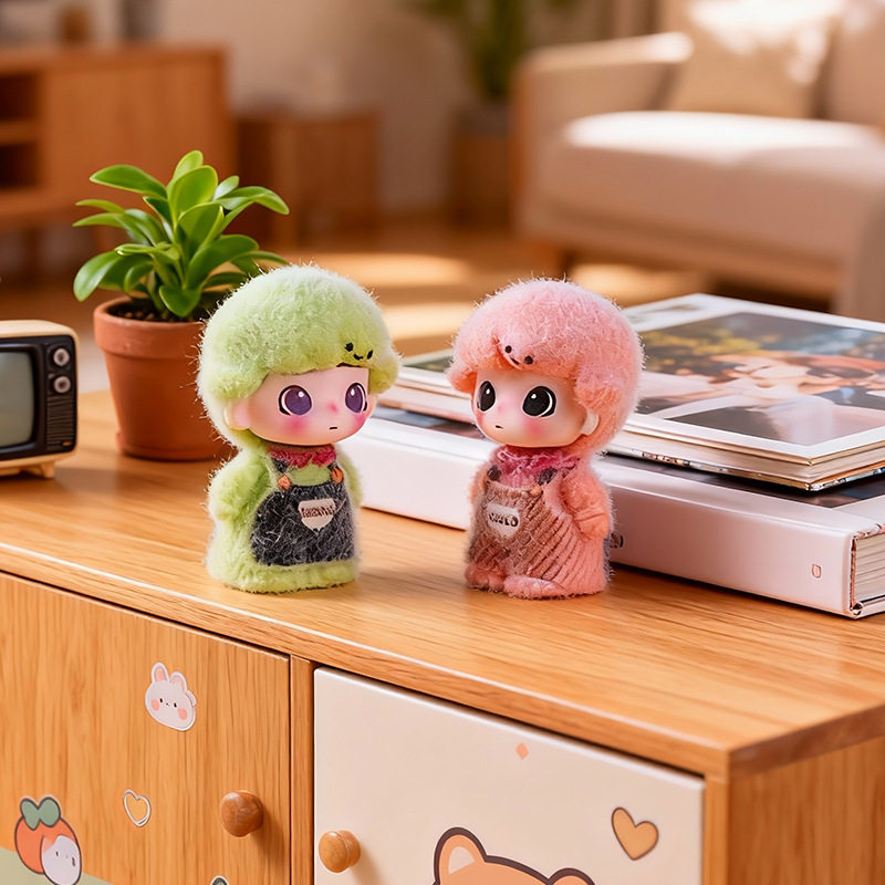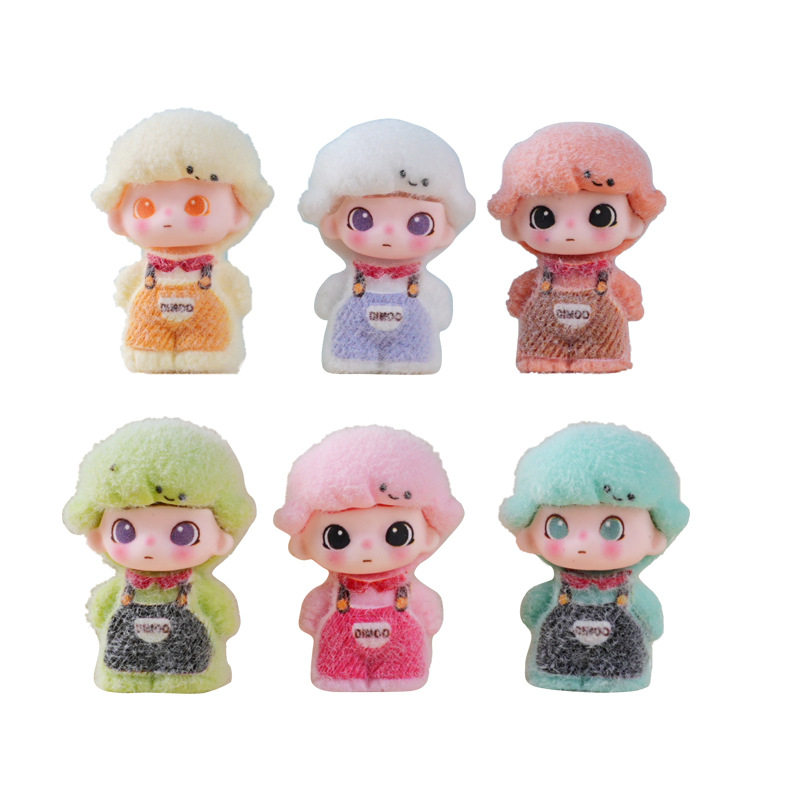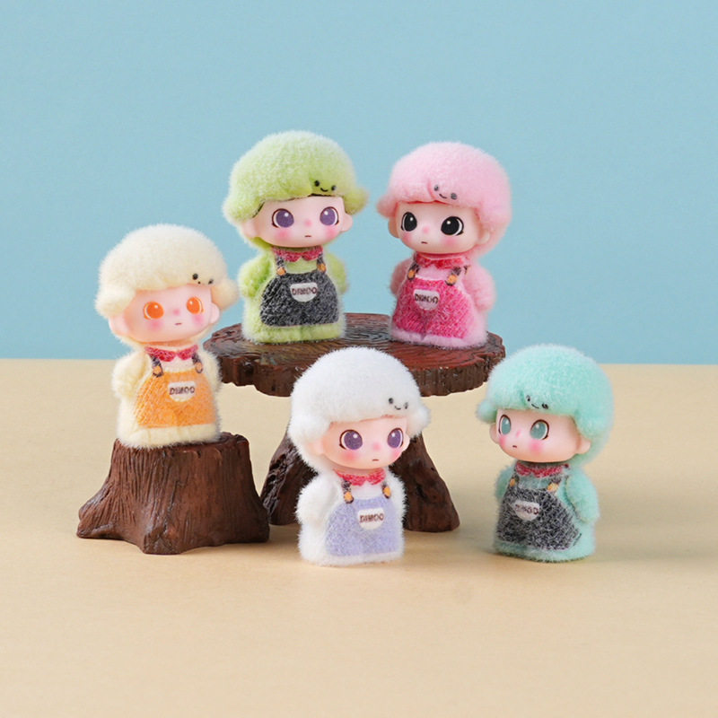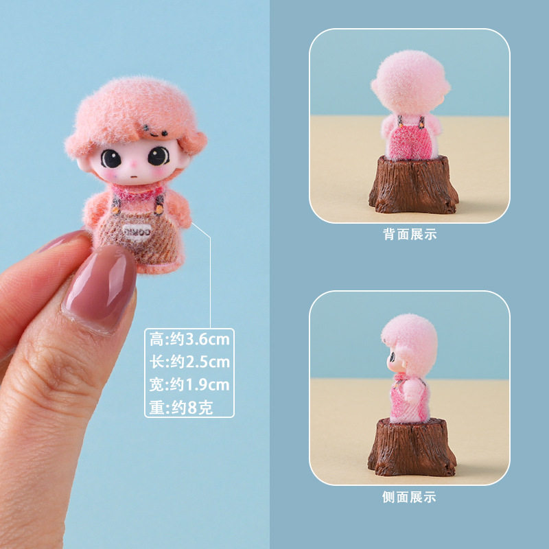 一组6个 植绒站姿背带裤莫莫dimo 萌粒diy树脂桌面摆件钥匙扣礼物