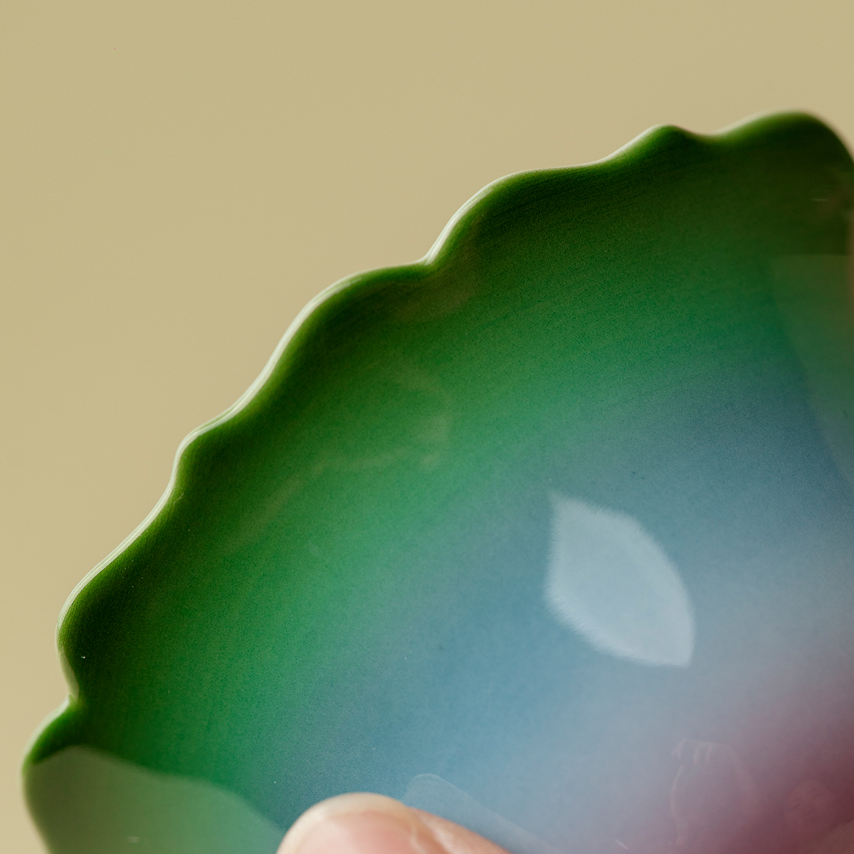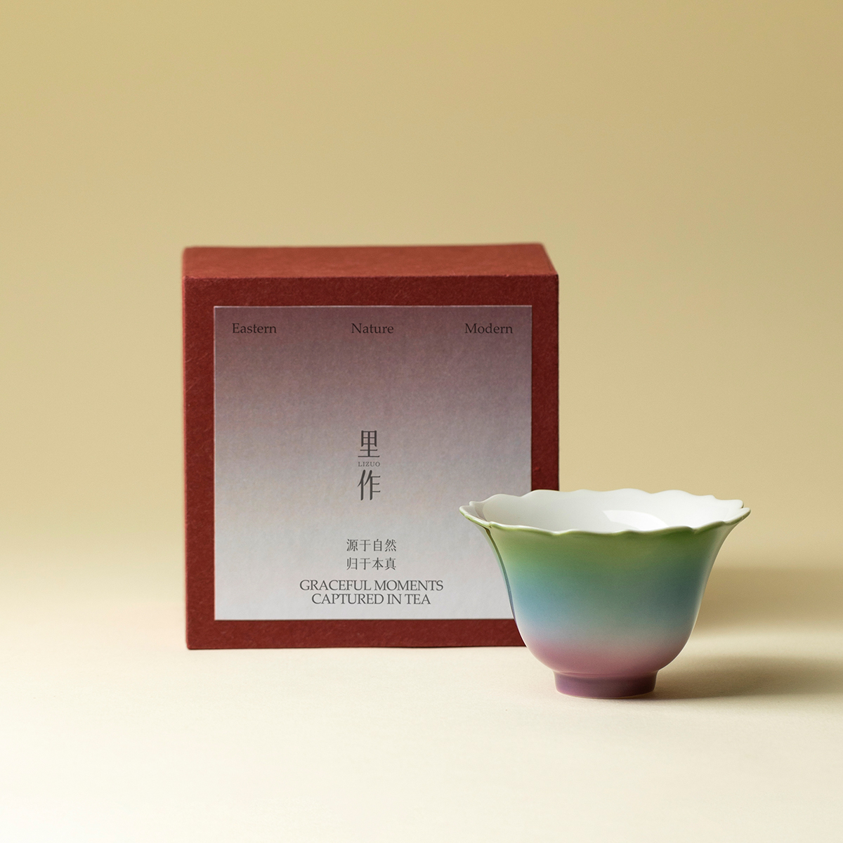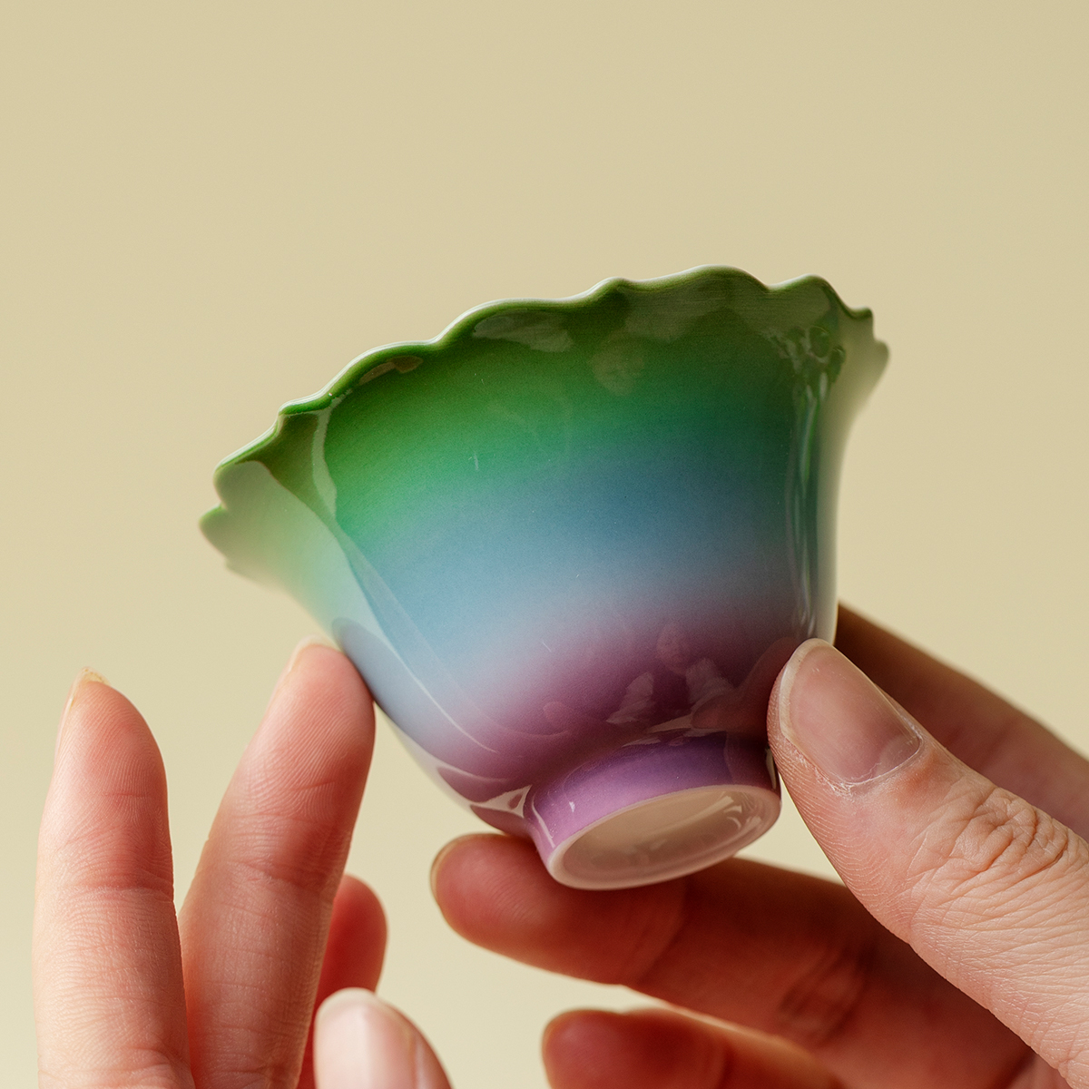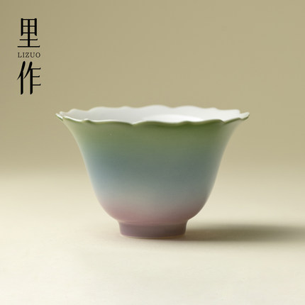 里作新中式渐变翠影花口主人杯高端高颜值茶杯陶瓷功夫茶具品茗杯