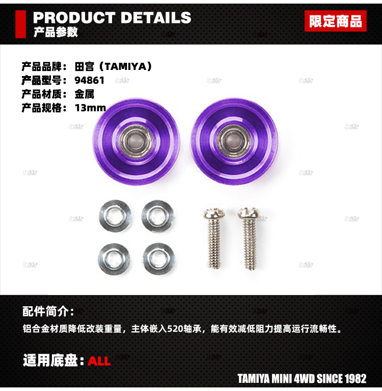 原装正品田宫四驱车13mm铝合金轴承导轮15437 95576 95577 95612