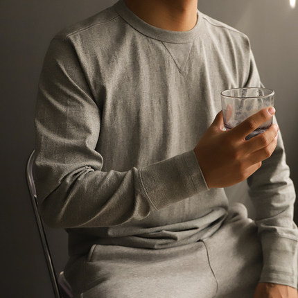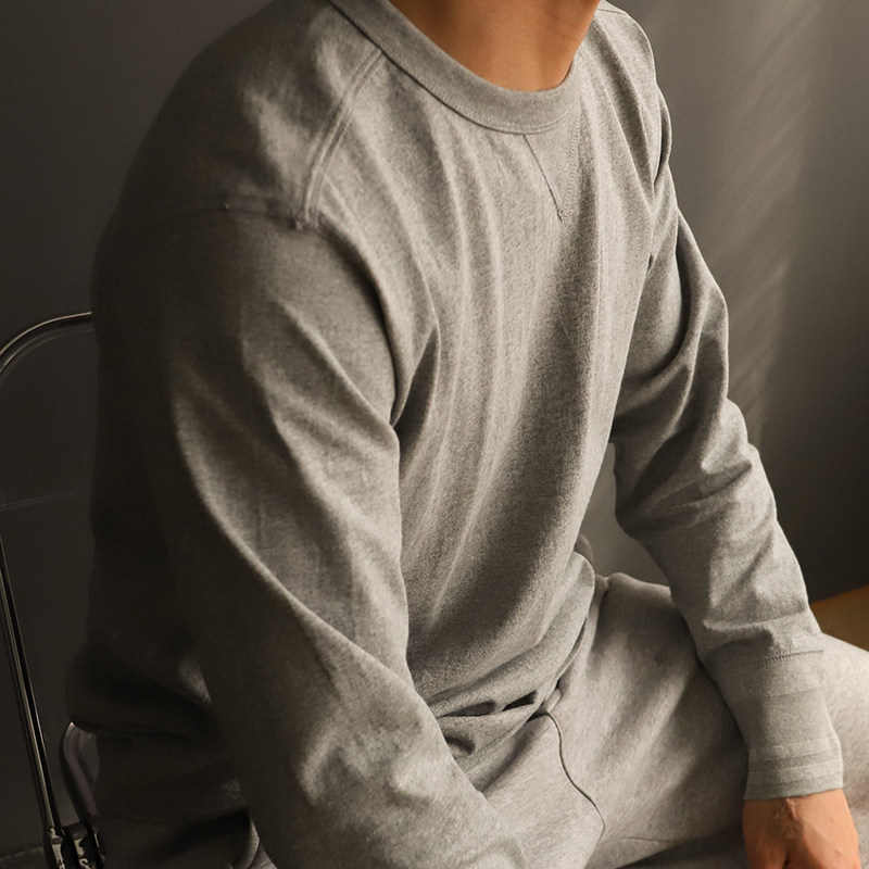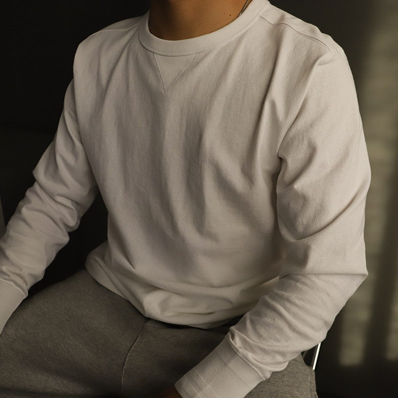 美式复古重磅纯棉长袖t恤男纯色圆领修身上衣商务休闲打底衫秋潮