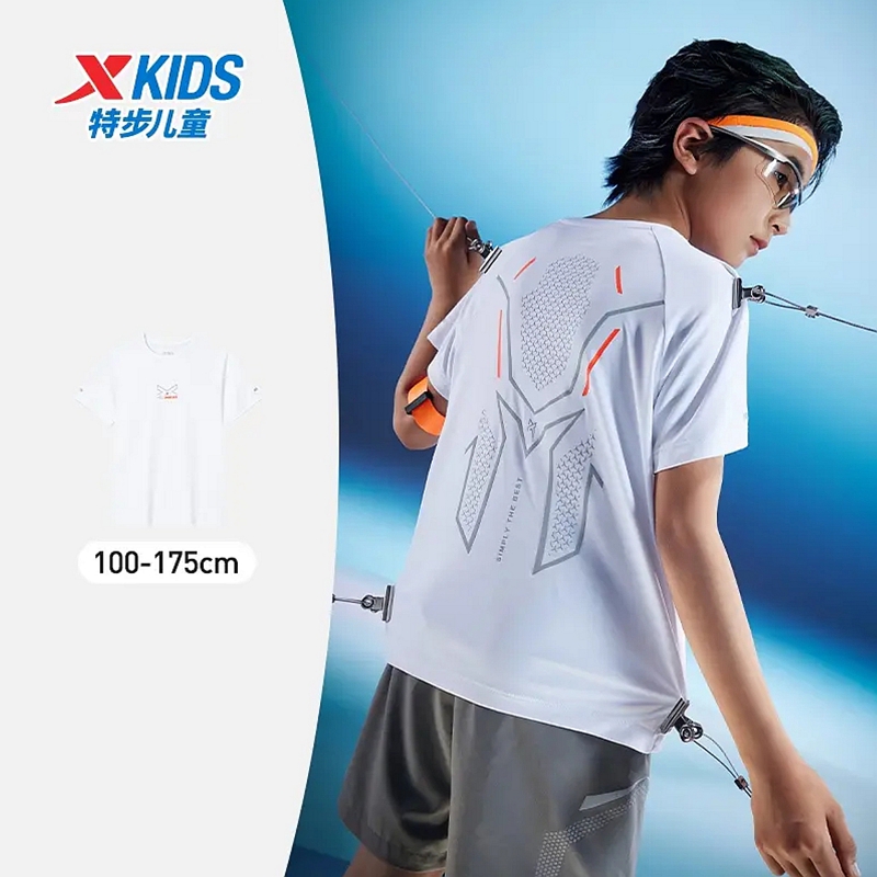 特步儿童短袖童装吸湿速干T恤男童夏季盾甲透气短T中大童跑步上衣