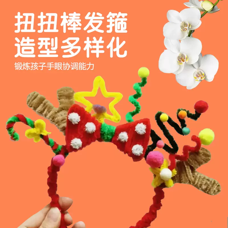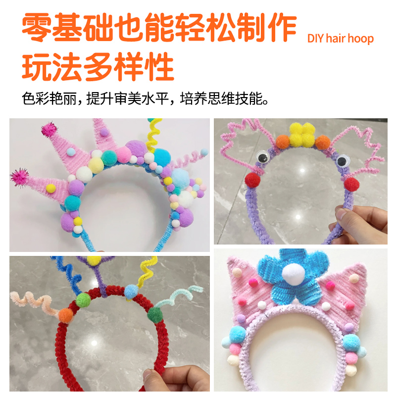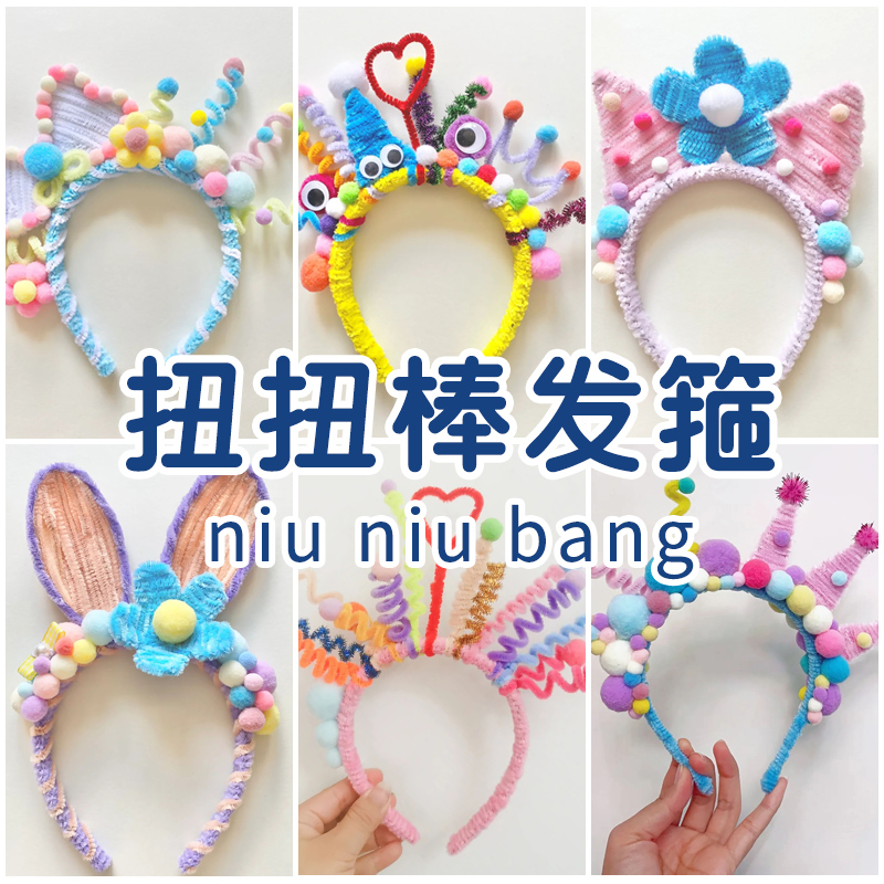 扭扭棒发箍材料包儿童头箍手工制作diy幼儿园加密毛根头饰毛条