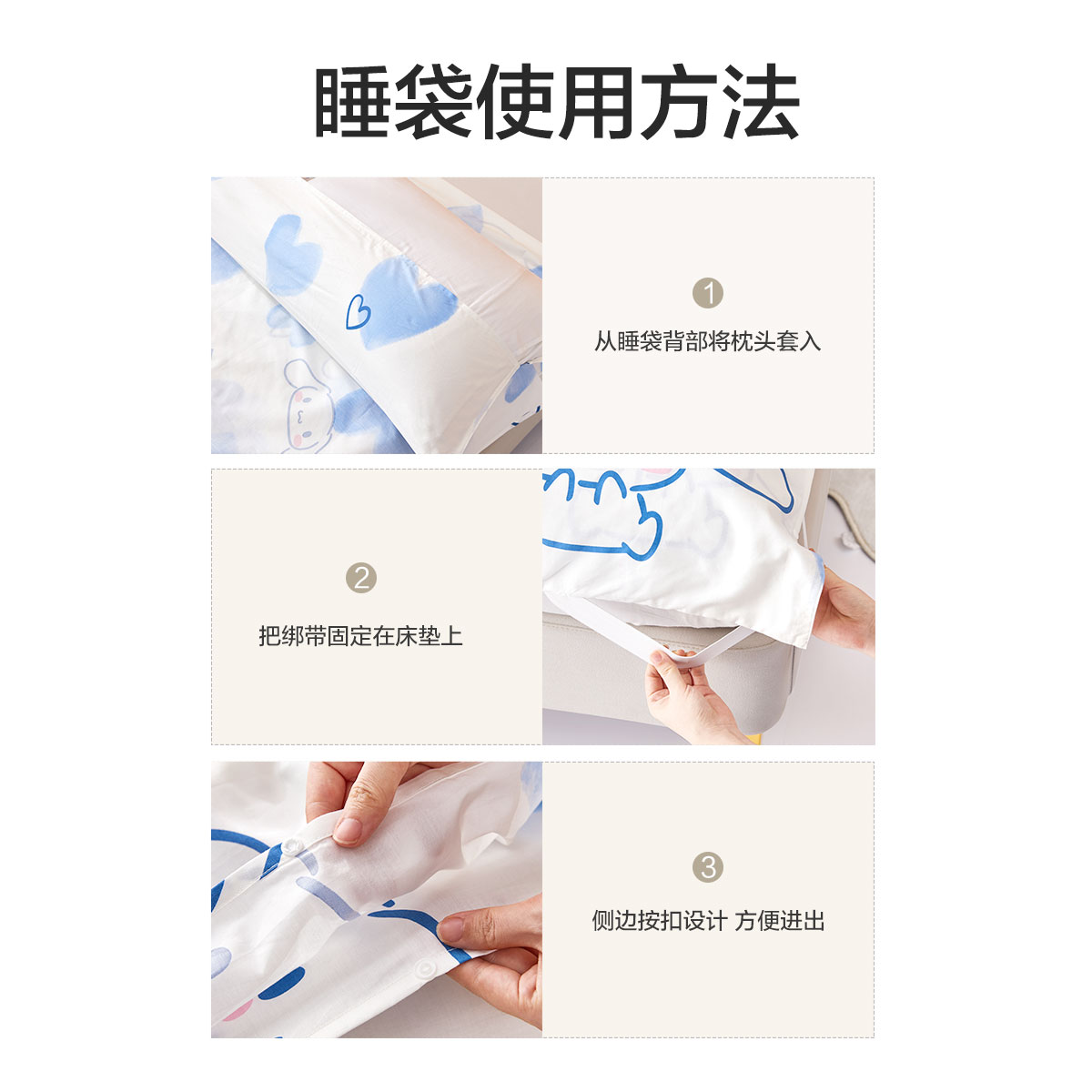水星家纺全棉抗菌隔脏睡袋儿童小孩动漫卡通便携睡袋可水洗床品