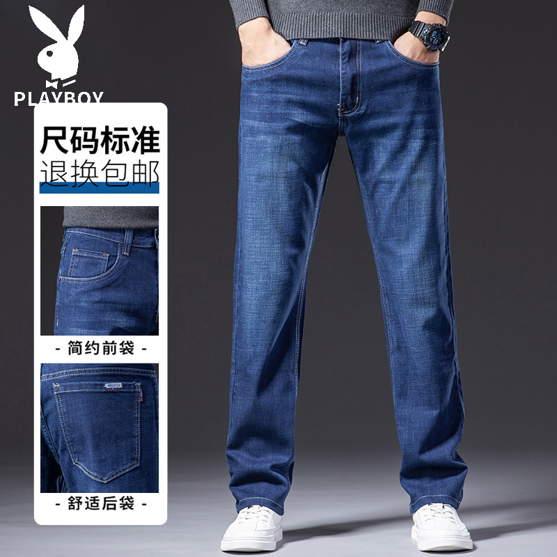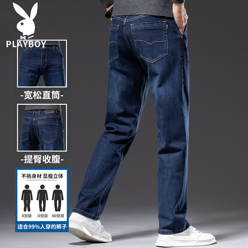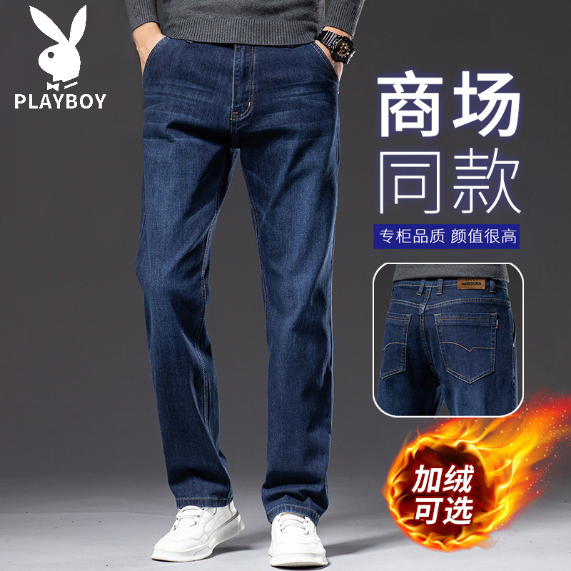 花花公子牛仔裤男2025秋季新款宽松弹力男裤加绒直筒潮牌男士长裤