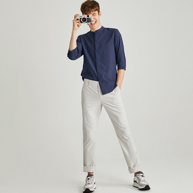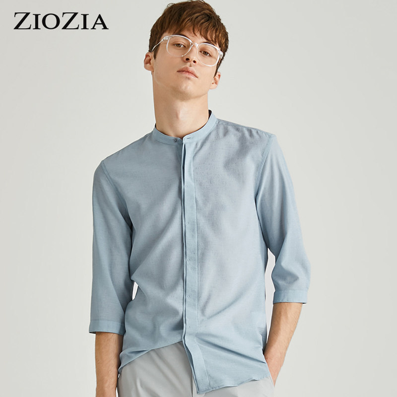 ZIOZIA九牧王旗下男装时尚小立领七分袖衬衫速干衬衣ZWC02306X
