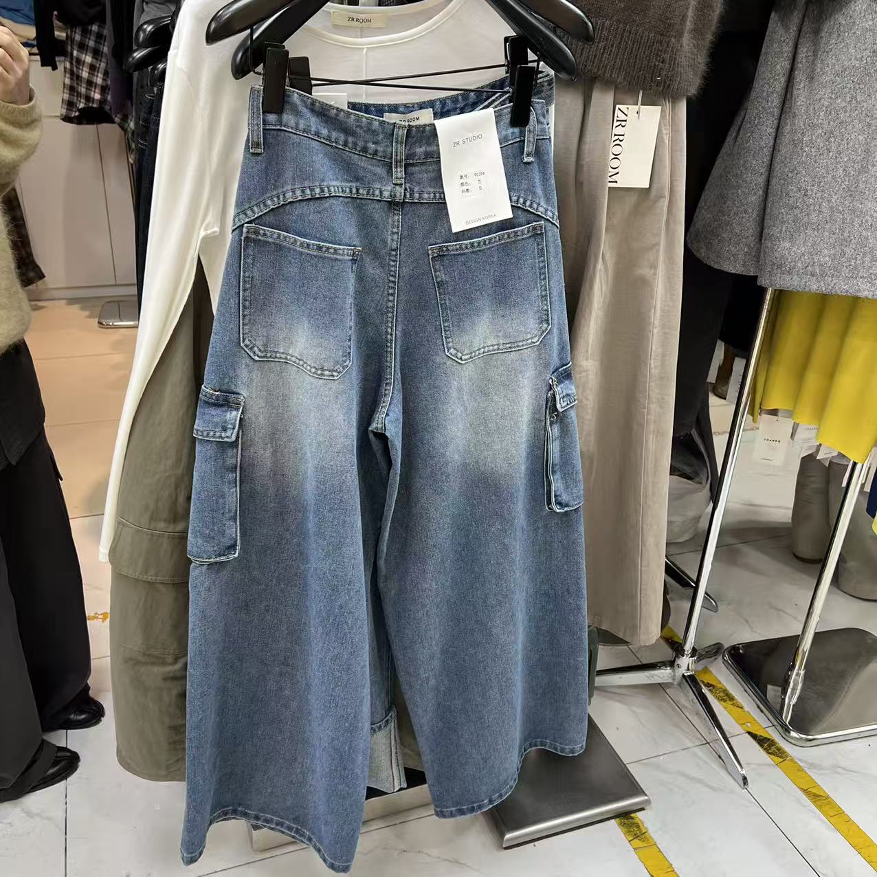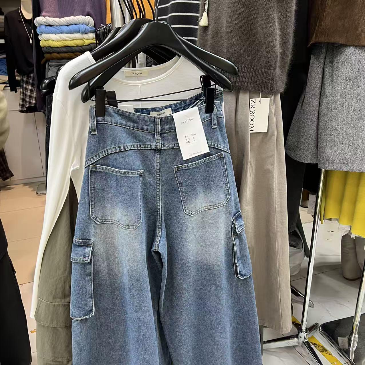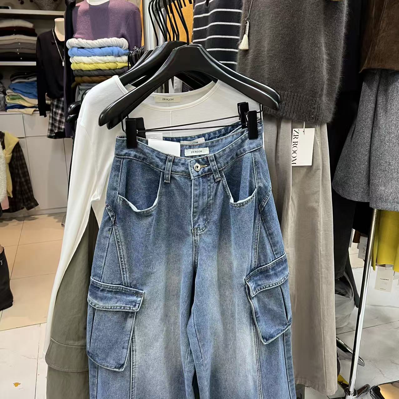 十三行ZR ROOM2025秋冬新款高腰百搭复古口袋工装牛仔裤长裤9039