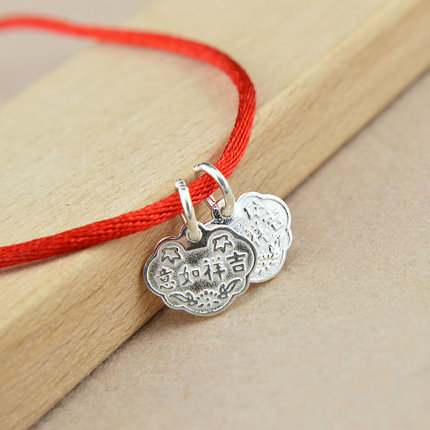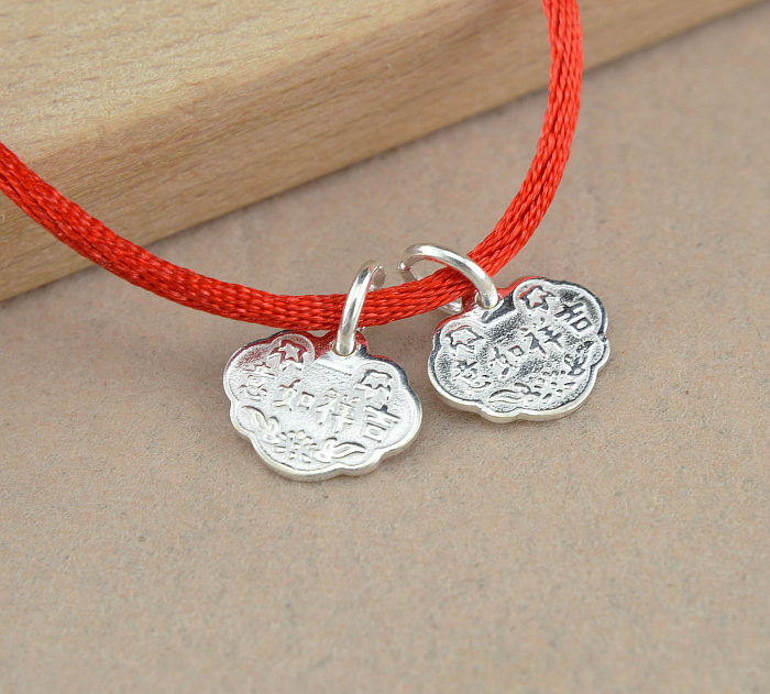手工编织手链吊坠 925纯银吉祥如意长命富贵锁挂坠 银饰DIY配件