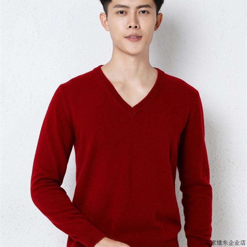 2025年秋冬新款100%纯羊毛男士针织衫宽松V领休闲羊绒毛衣打底衫