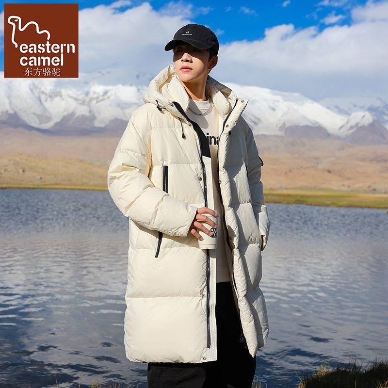 90白鸭绒中长款白色羽绒服男士2025冬季新款轻薄保暖防寒冬装外套