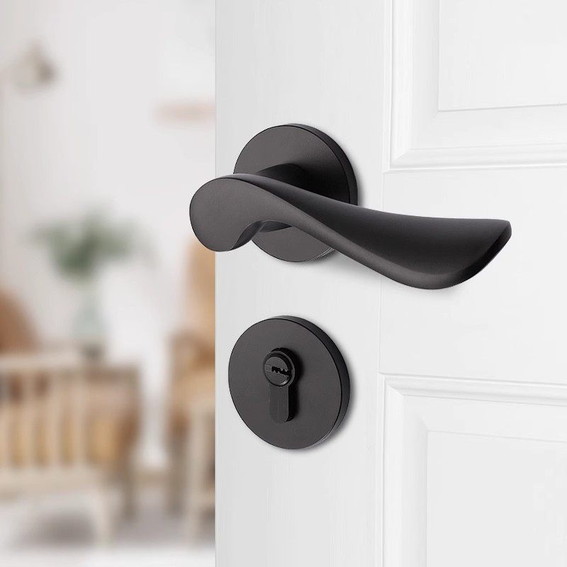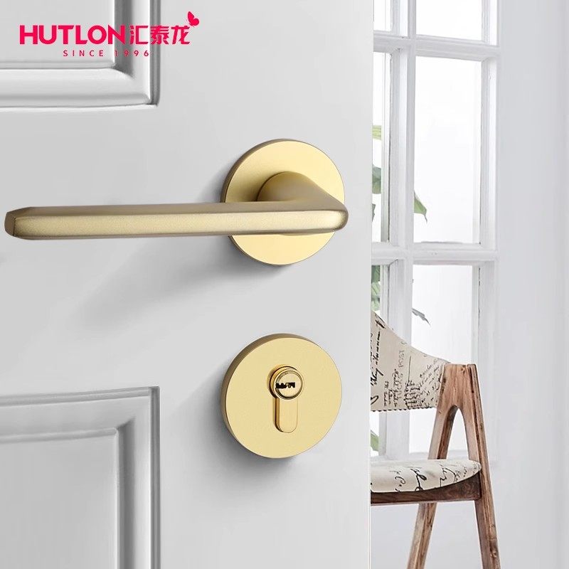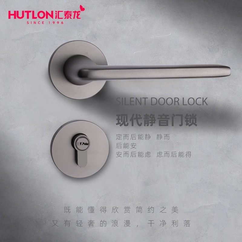 汇泰龙静音黑色铝合金分体门锁