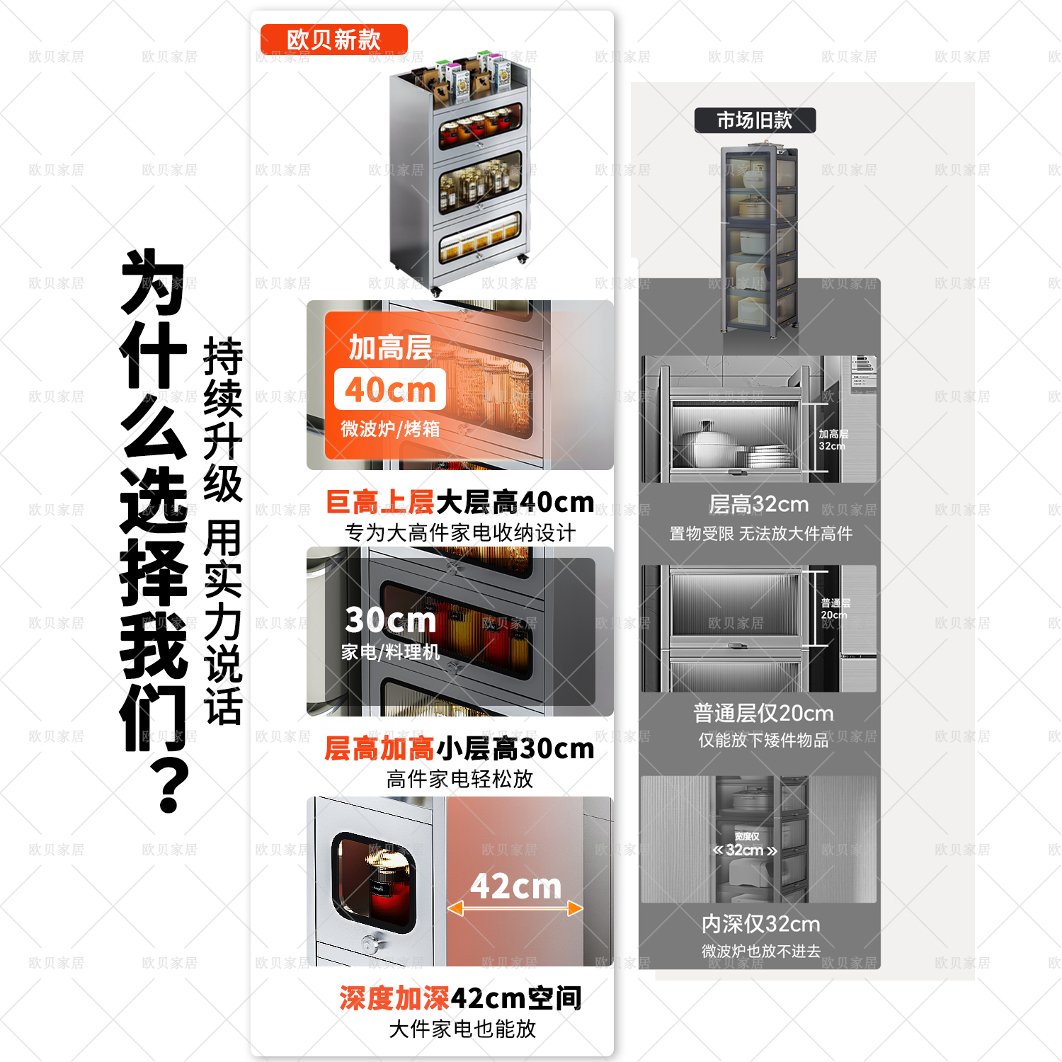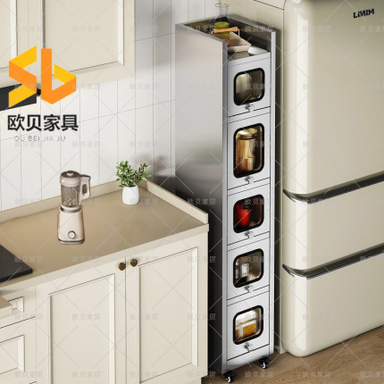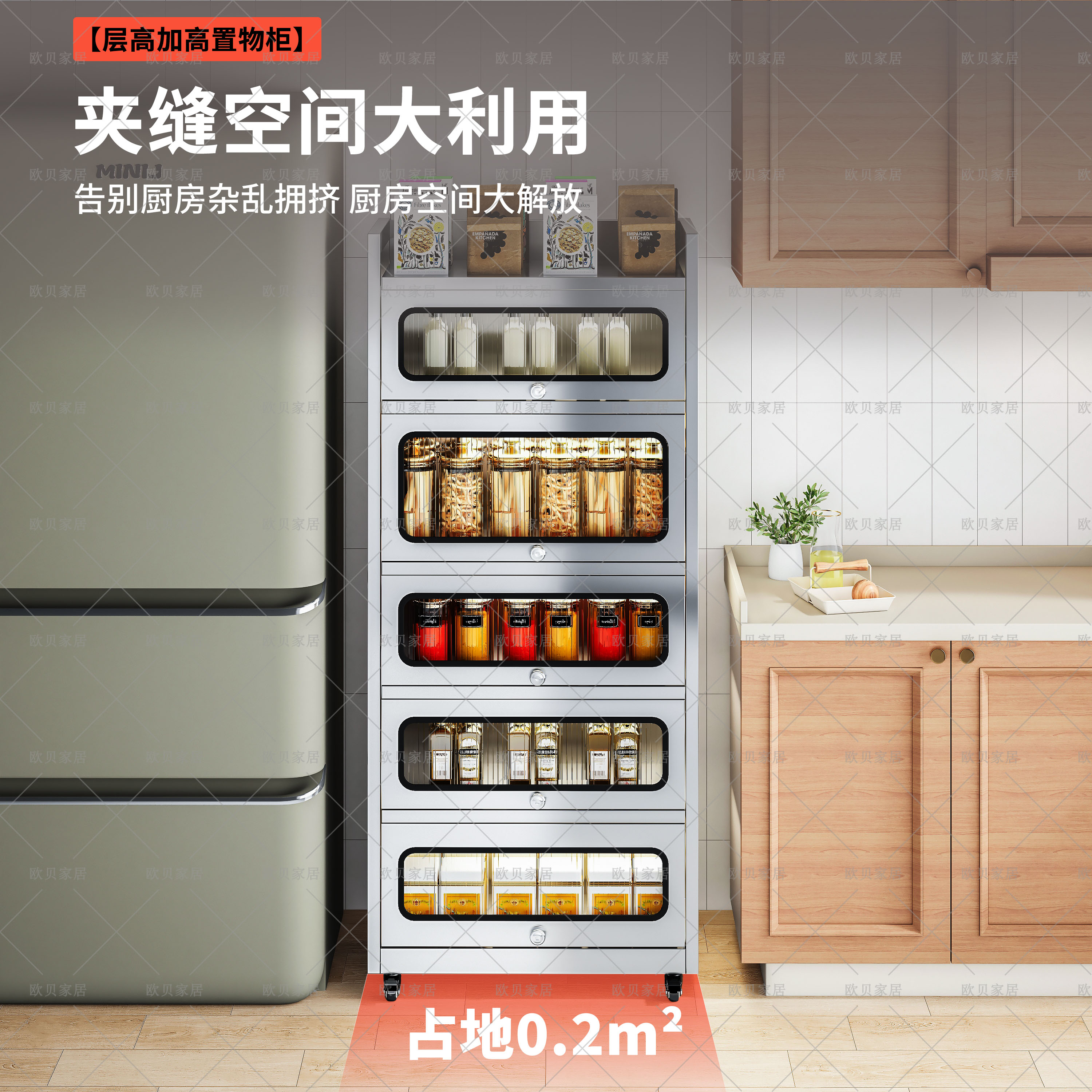 不锈钢夹缝收纳柜厨房多层置物架落地多功能储物柜缝隙调料锅橱柜