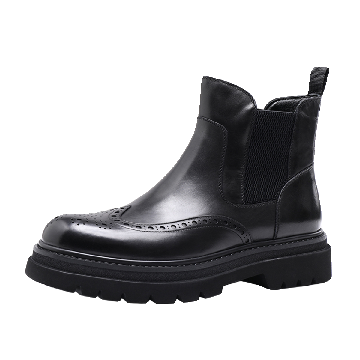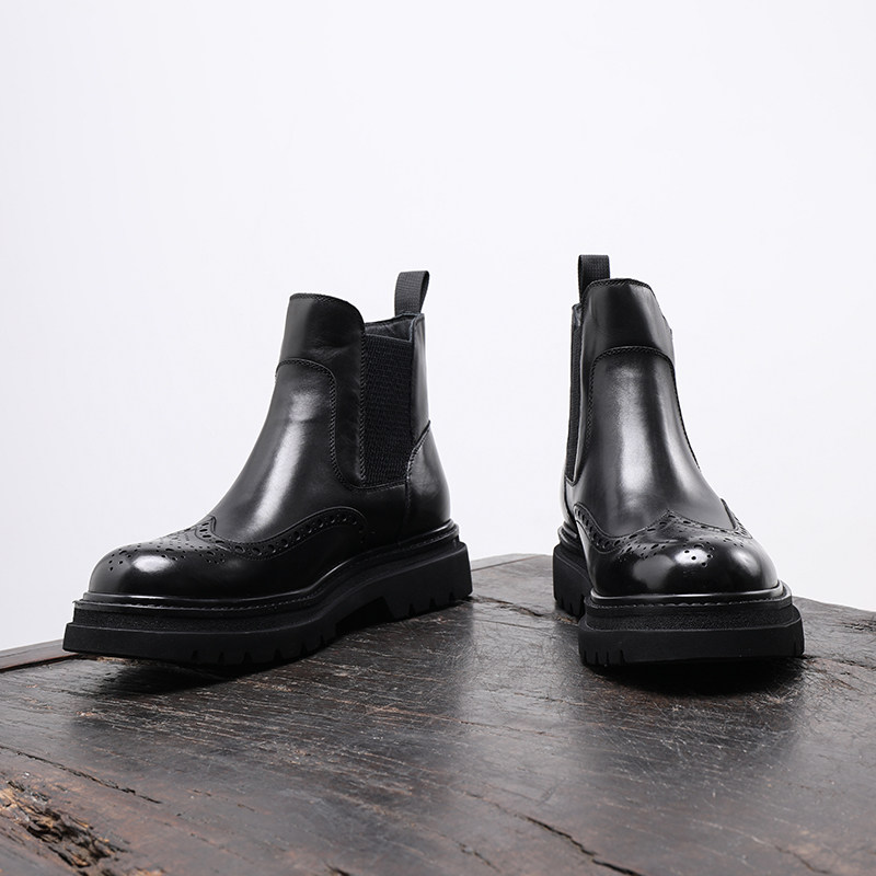 复古胎牛皮男士切尔西靴布洛克烟筒厚底增高商务休闲真皮加绒短靴