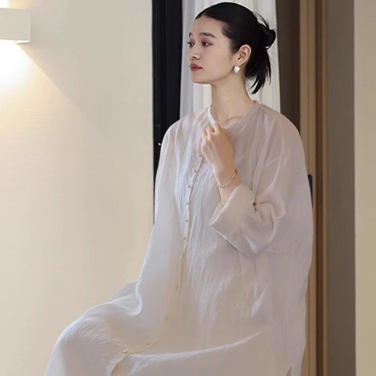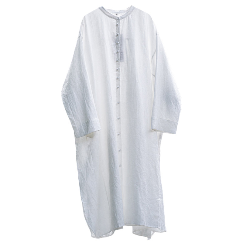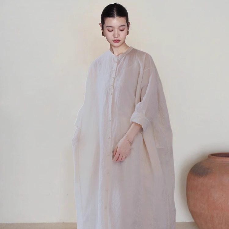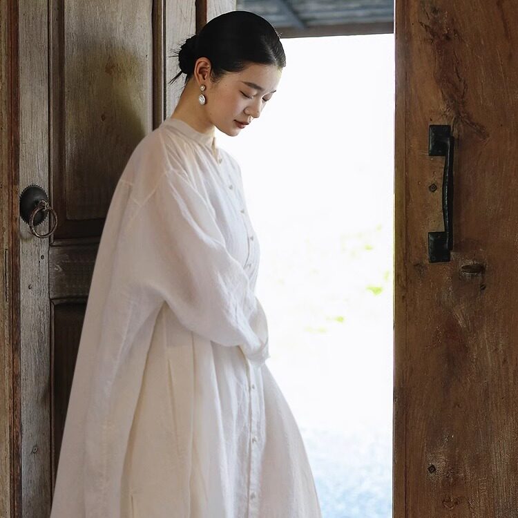 知笔墨2025夏新款东方白苎麻轻盈亲肤连衣裙 宽松禅意中式长白袍