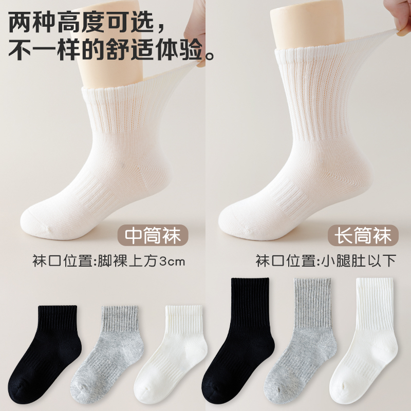 儿童白色袜子春秋薄款纯棉男童女童中筒学生袜小孩宝宝长筒袜秋冬