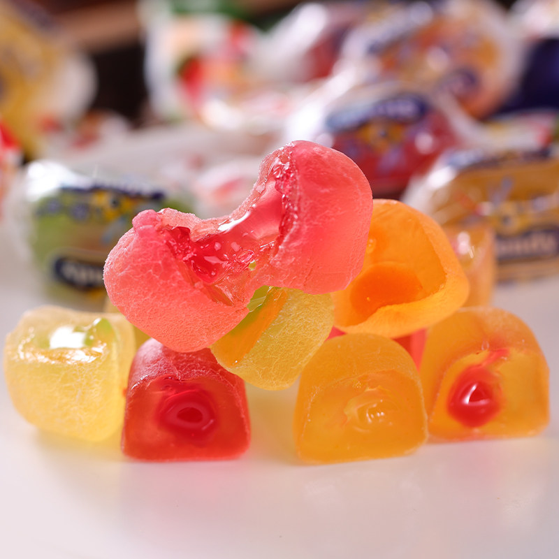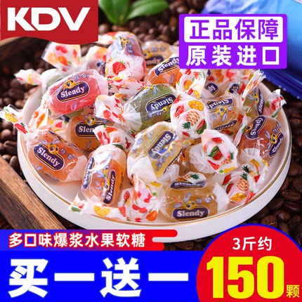 俄罗斯进口水果软糖爆浆夹心KDV紫皮糖什锦Q糖喜糖年货休闲零食品